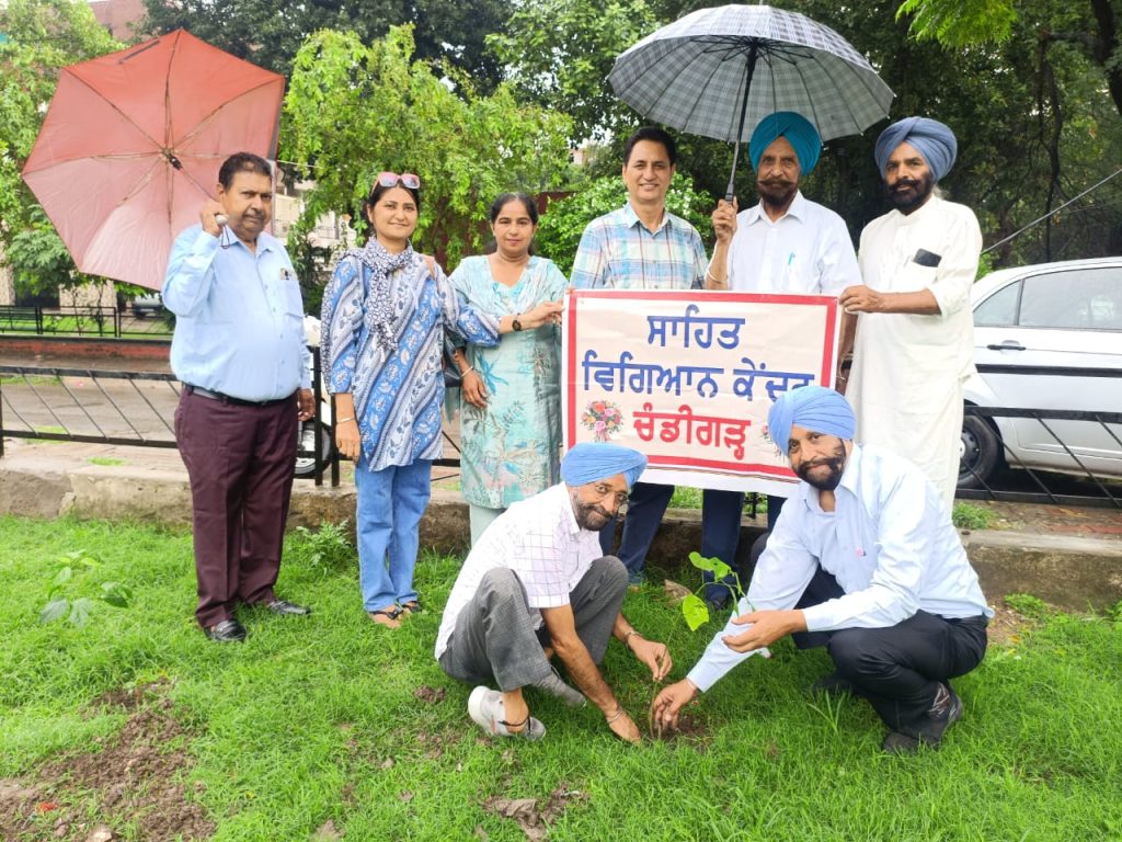 ਸਾਹਿਤ ਵਿਗਿਆਨ ਕੇਂਦਰ ( ਰਜਿ:) ਚੰਡੀਗੜ੍ਹ ਵਲੋਂ ਸੈਕਟਰ 45 ਦੇ ਇਕ ਪਾਰਕ ਵਿਚ ਲਗਭਗ 40 ਛਾਂਦਾਰ ਬੂਟੇ ਲਾਏ ਗਏ। ਭਾਵੇਂ ਸਵੇਰੇ ਹੀ ਤੇਜ ਬਾਰਿਸ਼ ਸ਼ੁਰੂ ਹੋ ਗਈ ਸੀ ਪਰ ਇਸ ਕੇਂਦਰ ਦੇ ਦ੍ਰਿੜ ਇਰਾਦੇ ਵਾਲੇ ਮੈਂਬਰ ਗਿਆਰਾਂ ਵਜੇ ਇਕੱਠੇ ਹੋ ਗਏ। ਪਹਿਲਾਂ ਕੇਂਦਰ ਦੇ ਪ੍ਰਧਾਨ ਗੁਰਦਰਸ਼ਨ ਸਿੰਘ ਮਾਵੀ ਨੇ ਮਨੁੱਖੀ ਜੀਵਨ ਵਿਚ ਬੂਟਿਆਂ ਦੇ ਮਹੱਤਵ ਬਾਰੇ ਦੱਸਿਆ।ਇੰਨੀ ਤੇਜ ਬਾਰਿਸ਼ ਵਿਚ ਹਾਜ਼ਰ ਹੋਏ ਮੈਂਬਰ ਸਾਹਿਬਾਨ ਦਾ ਧੰਨਵਾਦ ਕੀਤਾ।ਇਹਨਾਂ ਬੂਟਿਆਂ ਵਿਚ ਜਾਮਨ, ਔਲਾ ਜੂਨੀਪਰ,ਨਿੰਮ,ਬਹੇੜਾ,ਸ਼ਿੰਗਾਰ ਅਤੇ ਸੁਹੰਜਣਾ ਦੇ ਬੂਟੇ ਸ਼ਾਮਲ ਸਨ।