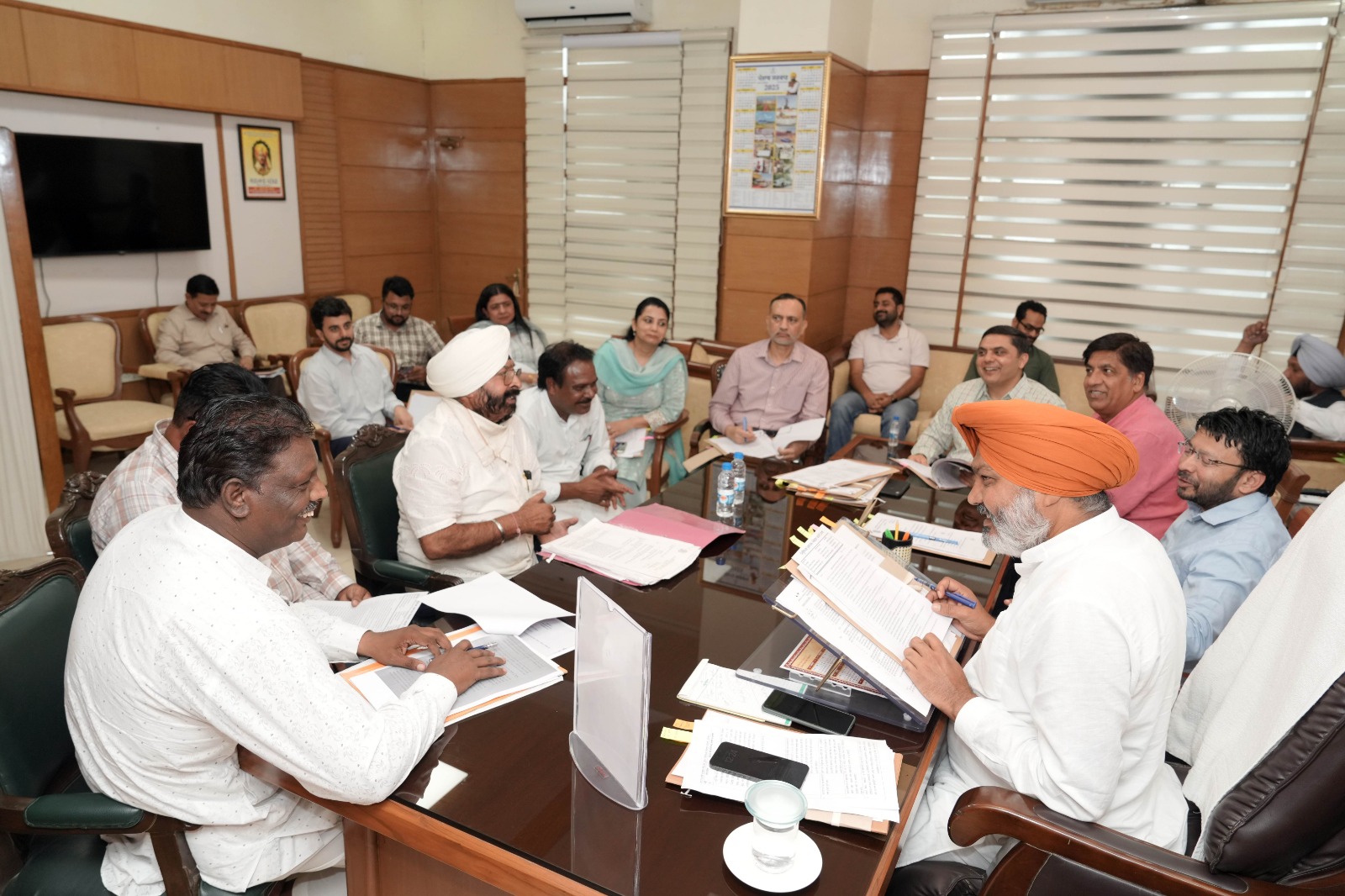 ਵਿੱਤ ਮੰਤਰੀ ਹਰਪਾਲ ਸਿੰਘ ਚੀਮਾ ਵੱਲੋਂ ਸਥਾਨਕ ਸਰਕਾਰਾਂ ਵਿਭਾਗ ਤੋਂ ਪਿਛਲੀ ਮੀਟਿੰਗ ਤੋਂ ਬਾਅਦ ਯੂਨੀਅਨਾਂ ਦੇ ਮੁੱਦਿਆਂ ਨੂੰ ਹੱਲ ਕਰਨ ਦੀ ਦਿਸ਼ਾ ਵਿੱਚ ਹੋਈ ਪ੍ਰਗਤੀ ਬਾਰੇ ਜਾਣਕਾਰੀ ਲਈ ਗਈ। ਉਨ੍ਹਾਂ ਯੂਨੀਅਨ ਆਗੂਆਂ ਨੂੰ ਵਿਸ਼ਵਾਸ ਦਿਵਾਇਆ ਕਿ ਪੰਜਾਬ ਸਰਕਾਰ ਵੱਲੋਂ ਉਨ੍ਹਾਂ ਦੀਆਂ ਮੰਗਾਂ ਪ੍ਰਤੀ ਹਮਦਰਦੀ ਨਾਲ ਵਿਚਾਰ ਕੀਤਾ ਜਾ ਰਿਹਾ ਹੈ ਅਤੇ ਜਾਇਜ ਮੰਗਾਂ ਨੂੰ ਜਲਦੀ ਹੱਲ ਕਰਨ ਦਾ ਭਰੋਸਾ ਦਿੱਤਾ। ਉਨ੍ਹਾਂ ਕਿਹਾ ਕਿ ਪੰਜਾਬ ਸਰਕਾਰ ਆਪਣੇ ਨਗਰ ਨਿਗਮਾਂ ਦੇ ਮੁਲਾਜ਼ਮਾਂ ਦੀ ਭਲਾਈ ਨੂੰ ਯਕੀਨੀ ਬਣਾਉਣ ਲਈ ਵਚਨਬੱਧ ਹੈ ਅਤੇ ਉਨ੍ਹਾਂ ਦੀਆਂ ਮੰਗਾਂ ਤੇ ਮਸਲਿਆਂ ਨੂੰ ਸਮੇਂ ਸਿਰ ਹੱਲ ਕਰਨ ਲਈ ਵਚਨਬੱਧ ਹੈ।