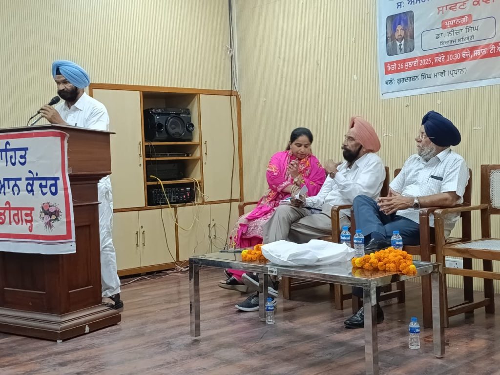 ਸਾਹਿਤ ਵਿਗਿਆਨ ਕੇਂਦਰ ( ਰਜਿ:) ਚੰਡੀਗੜ੍ਹ ਦੀ ਮਾਸਿਕ ਇਕੱਤਰਤਾ ਟੀ.ਐੱਸ. ਸੈਂਟਰਲ ਸਟੇਟ ਲਾਇਬ੍ਰੇਰੀ, ਚੰਡੀਗੜ੍ਹ ਵਿਖੇ ਹੋਈ ਜਿਸ ਵਿਚ ਇਸ ਕੇਂਦਰ ਦੇ ਸੁਹਿਰਦ ਮੈਂਬਰ ਸ: ਅਮਰਜੀਤ ਸਿੰਘ ਖੁਰਲ ਦੀ ਯਾਦ ਨੂੰ ਸਮਰਪਿਤ ਕਵੀ-ਦਰਬਾਰ ਕਰਵਾਇਆ ਗਿਆ।ਪ੍ਰਧਾਨਗੀ ਮੰਡਲ ਵਿਚ ਪ੍ਰਸਿੱਧ ਗਜ਼ਲਗੋ ਸ: ਗੁਰਚਰਨ ਸਿੰਘ ਜੋਗੀ ( ਅੰਬਾਲਾ) ,ਡਾ: ਅਵਤਾਰ ਸਿੰਘ ਪਤੰਗ, ਗੁਰਦਰਸ਼ਨ ਸਿੰਘ ਮਾਵੀ ਅਤੇ ਦਵਿੰਦਰ ਕੌਰ ਢਿੱਲੋਂ ਸੁਸ਼ੋਭਿਤ ਸਨ।ਗੁਰਦਰਸ਼ਨ ਸਿੰਘ ਮਾਵੀ ਨੇ ਸਭ ਨੂੰ ਜੀ ਆਇਆਂ ਆਖਿਆ ਅਤੇ ਇਸ ਕੇਂਦਰ ਵਲੋਂ ਕੀਤੇ ਗਏ ਵੱਖੋ ਵੱਖ ਪ੍ਰੋਗਰਾਮਾਂ ਬਾਰੇ ਦੱਸਿਆ। ਸ਼ੁਰੂ ਵਿਚ ਡਾ: ਅਵਤਾਰ ਸਿੰਘ ਪਤੰਗ ਜੀ ਨੇ ਪੰਜਾਬੀ ਜੀਵਨ ਵਿਚ ਸਾਵਣ ਮਹੀਨੇ ਦੀ ਮਹਤੱਤਾ ਬਾਰੇ ਦੱਸਿਆ।ਸੁਰਜੀਤ ਸਿੰਘ ਧੀਰ ਜੀ ਨੇ ਤਰੰਨਮ ਵਿਚ ਗਜ਼ਲ ਸੁਣਾਈ। ਗੁਰਦਾਸ ਸਿੰਘ ਦਾਸ, ਬਲਵਿੰਦਰ ਸਿੰਘ ਢਿੱਲੋਂ, ਹਰਭਜਨ ਕੌਰ ਢਿੱਲੋਂ, ਅਮਰਜੀਤ ਕੌਰ, ਮਲਕੀਤ ਸਿੰਘ ਨਾਗਰਾ,ਡਾ: ਮਨਜੀਤ ਸਿੰਘ ਬੱਲ, ਦਰਸ਼ਨ ਤਿਊਣਾ, ਲਾਭ ਸਿੰਘ ਲਹਿਲੀ,ਸਿਮਰਜੀਤ ਕੌਰ ਗਰੇਵਾਲ, ਹਰਿੰਦਰਜੀਤ ਸਿੰਘ ਹਰ,ਰਤਨ ਬਾਬਕਵਾਲਾ,ਸਰਬਜੀਤ ਸਿੰਘ ਪੱਡਾ,ਜਗਤਾਰ ਸਿੰਘ ਜੋਗ, ਭਰਪੂਰ ਸਿੰਘ, ਕਰਨੈਲ ਸਿੰਘ ਨੇ ਸਾਵਣ ਬਾਰੇ ਵਧੀਆ ਗੀਤ ਸੁਣਾਏ।