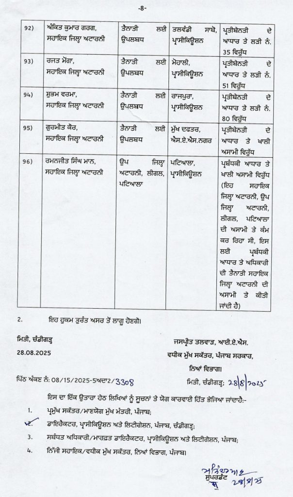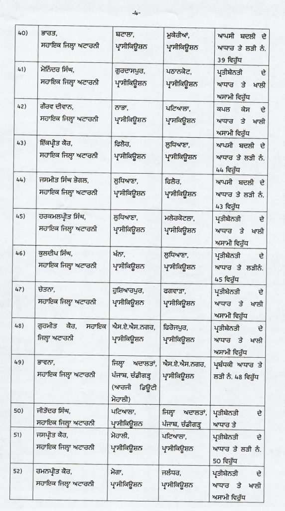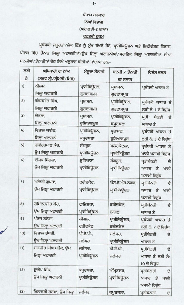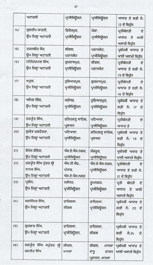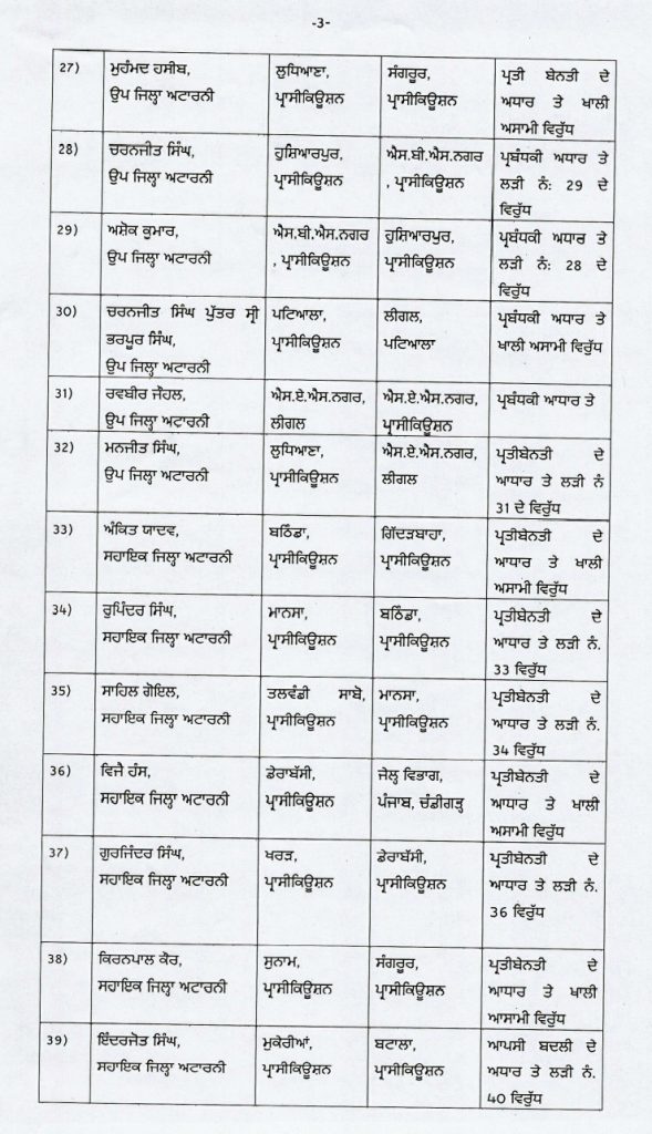 ਪੰਜਾਬ ਸਰਕਾਰ ਵੱਲੋਂ ਜ਼ਿਲ੍ਹਾ ਅਟਾਰਨੀਆਂ, ਉਪ ਜ਼ਿਲ੍ਹਾ ਅਟਾਰਨੀਆਂ, ਸਹਾਇਕ ਜ਼ਿਲ੍ਹਾ ਅਟਾਰਨੀਆਂ ਦੇ ਤਬਾਦਲੇ ਚੰਡੀਗੜ੍ਹ ਪੰਜਾਬ ਅਗਸਤ 29, 2025ਅਗਸਤ 29, 2025BolePunjab.comLeave a Comment on ਪੰਜਾਬ ਸਰਕਾਰ ਵੱਲੋਂ ਜ਼ਿਲ੍ਹਾ ਅਟਾਰਨੀਆਂ, ਉਪ ਜ਼ਿਲ੍ਹਾ ਅਟਾਰਨੀਆਂ, ਸਹਾਇਕ ਜ਼ਿਲ੍ਹਾ ਅਟਾਰਨੀਆਂ ਦੇ ਤਬਾਦਲੇ ਚੰਡੀਗੜ੍ਹ, 29 ਅਗਸਤ, ਬੋਲੇ ਪੰਜਾਬ ਬਿਊਰੋ; ਪੰਜਾਬ ਸਰਕਾਰ ਦੇ ਨਿਆਂ ਵਿਭਾਗ ਨੇ ਪ੍ਰਬੰਧਕੀ, ਲੋਕ ਹਿੱਤ ਨੂੰ ਮੁੱਖ ਰੱਖਦੇ ਹੋਏ ਪ੍ਰਾਸੀਕਿਊਸ਼ਨ ਅਤੇ ਲਿਟੀਗੇਸ਼ਨ ਵਿਭਾਗ ਪੰਜਾਬ ‘ਚ ਤਾਇਨਾਤ ਜ਼ਿਲ੍ਹਾ ਅਟਾਰਨੀਆਂ, ਉਪ ਜ਼ਿਲ੍ਹਾ ਅਟਾਰਨੀਆਂ, ਸਹਾਇਕ ਜ਼ਿਲ੍ਹਾ ਅਟਾਰਨੀਆਂ ਦੇ ਤਬਾਦਲੇ ਕੀਤੇ ਹਨ। Related Postਪੰਜਾਬ ਨੇ ਸਕੂਲ ਅਧਿਆਪਕਾਂ ਨੂੰ ਕਰੀਅਰ ਮੈਂਟਰ ਵਜੋਂ ਸਿਖਲਾਈ ਦੇਣ ਲਈ ਆਈ.ਆਈ.ਟੀ. ਮਦਰਾਸ ਨਾਲ ਹੱਥ ਮਿਲਾਇਆਦਸੰਬਰ 5, 2025ਪੰਜਾਬ ਵਿੱਚ ਜ਼ਿਲ੍ਹਾ ਪ੍ਰੀਸ਼ਦ ਚੋਣਾਂ ਨੂੰ ਲੈ ਕੇ ਕਾਂਗਰਸ ਨੇ ਹਾਈ ਕੋਰਟ ਦਾ ਦਰਵਾਜ਼ਾ ਖੜਕਾਇਆਦਸੰਬਰ 5, 2025ਚੰਡੀਗੜ੍ਹ ਪੁਲਿਸ ਦੇ ਸ਼ਰਾਬੀ ASI ਨੇ 10 ਵਾਹਨਾਂ ਨੂੰ ਮਾਰੀ ਟੱਕਰਦਸੰਬਰ 5, 2025Latest Newsਪੰਜਾਬ ਨੇ ਸਕੂਲ ਅਧਿਆਪਕਾਂ ਨੂੰ ਕਰੀਅਰ ਮੈਂਟਰ ਵਜੋਂ ਸਿਖਲਾਈ ਦੇਣ ਲਈ ਆਈ.ਆਈ.ਟੀ. ਮਦਰਾਸ ਨਾਲ ਹੱਥ ਮਿਲਾਇਆਸੰਸਦ ਮੈਂਬਰ ਸ਼੍ਰੀ ਮਨੀਸ਼ ਤਿਵਾੜੀ ਨੇ ਲੋਕ ਸਭਾ ਵਿੱਚ ਹਰਿਆਣਾ, ਪੰਜਾਬ ਅਤੇ ਹਿਮਾਚਲ ਪ੍ਰਦੇਸ਼ ਦੇ ਡੈਮਾਂ ਦੀ ਡੀ-ਸਿਲਟਿੰਗ ਅਤੇ ਘਟਦੀ ਸਟੋਰੇਜ ਸਮਰੱਥਾ ਦਾ ਮੁੱਦਾ ਉਠਾਇਆਮੁੱਖ ਪ੍ਰਸ਼ਾਸ਼ਕ ਪੁੱਡਾ ਮੈਡਮ ਨੀਰੂ ਕਤਿਆਲ ਗੁਪਤਾ ਦੇ ਦਫਤਰ ਪੁੱਡਾ ਭਵਨ ਮੋਹਾਲੀ ਵਿਖੇ ਲੜੀਵਾਰ ਭੁੱਖ ਹੜਤਾਲਪੰਜਾਬ ਵਿੱਚ ਜ਼ਿਲ੍ਹਾ ਪ੍ਰੀਸ਼ਦ ਚੋਣਾਂ ਨੂੰ ਲੈ ਕੇ ਕਾਂਗਰਸ ਨੇ ਹਾਈ ਕੋਰਟ ਦਾ ਦਰਵਾਜ਼ਾ ਖੜਕਾਇਆਬਿਜਲੀ ਸੋਧ ਬਿਲ ਤੇ ਨਵੇਂ ਬੀਜ ਬਿੱਲ ਖਿਲਾਫ ਕਿਰਤੀ ਕਿਸਾਨ ਮੋਰਚਾ ਦੀ ਹੋਈ ਮੀਟਿੰਗPreviousNextLatest Newsਪੰਜਾਬ ਨੇ ਸਕੂਲ ਅਧਿਆਪਕਾਂ ਨੂੰ ਕਰੀਅਰ ਮੈਂਟਰ ਵਜੋਂ ਸਿਖਲਾਈ ਦੇਣ ਲਈ ਆਈ.ਆਈ.ਟੀ. ਮਦਰਾਸ ਨਾਲ ਹੱਥ ਮਿਲਾਇਆਸੰਸਦ ਮੈਂਬਰ ਸ਼੍ਰੀ ਮਨੀਸ਼ ਤਿਵਾੜੀ ਨੇ ਲੋਕ ਸਭਾ ਵਿੱਚ ਹਰਿਆਣਾ, ਪੰਜਾਬ ਅਤੇ ਹਿਮਾਚਲ ਪ੍ਰਦੇਸ਼ ਦੇ ਡੈਮਾਂ ਦੀ ਡੀ-ਸਿਲਟਿੰਗ ਅਤੇ ਘਟਦੀ ਸਟੋਰੇਜ ਸਮਰੱਥਾ ਦਾ ਮੁੱਦਾ ਉਠਾਇਆਮੁੱਖ ਪ੍ਰਸ਼ਾਸ਼ਕ ਪੁੱਡਾ ਮੈਡਮ ਨੀਰੂ ਕਤਿਆਲ ਗੁਪਤਾ ਦੇ ਦਫਤਰ ਪੁੱਡਾ ਭਵਨ ਮੋਹਾਲੀ ਵਿਖੇ ਲੜੀਵਾਰ ਭੁੱਖ ਹੜਤਾਲਪੰਜਾਬ ਵਿੱਚ ਜ਼ਿਲ੍ਹਾ ਪ੍ਰੀਸ਼ਦ ਚੋਣਾਂ ਨੂੰ ਲੈ ਕੇ ਕਾਂਗਰਸ ਨੇ ਹਾਈ ਕੋਰਟ ਦਾ ਦਰਵਾਜ਼ਾ ਖੜਕਾਇਆਬਿਜਲੀ ਸੋਧ ਬਿਲ ਤੇ ਨਵੇਂ ਬੀਜ ਬਿੱਲ ਖਿਲਾਫ ਕਿਰਤੀ ਕਿਸਾਨ ਮੋਰਚਾ ਦੀ ਹੋਈ ਮੀਟਿੰਗਪਾਈਟੈਕਸ ਵਿਖੇ ਅਪਾਹਜਾਂ ਅਤੇ ਬਜ਼ੁਰਗਾਂ ਲਈ ਵ੍ਹੀਲਚੇਅਰ ਦੀ ਸਹੂਲਤਚੰਡੀਗੜ੍ਹ ਪੁਲਿਸ ਦੇ ਸ਼ਰਾਬੀ ASI ਨੇ 10 ਵਾਹਨਾਂ ਨੂੰ ਮਾਰੀ ਟੱਕਰਪੰਜਾਬ ਵਿੱਚ ਰੇਲਵੇ ਪਟੜੀਆਂ ‘ਤੇ ਕਿਸਾਨਾਂ ਅਤੇ ਪੁਲਿਸ ਵਿਚਕਾਰ ਝੜਪਾਂਦੇਸ਼ ਭਗਤ ਯੂਨੀਵਰਸਿਟੀ ਨੇ ਕਰਵਾਈ ਅੰਤਰਰਾਸ਼ਟਰੀ ਕਾਨਫਰੰਸ ਅਤੇ ਅਗਾਂਹਵਧੂ ਕਿਸਾਨ ਮਿਲਣੀਆਮ ਆਦਮੀ ਪਾਰਟੀ ਵੱਲੋਂ ਨਾਮਜ਼ਦਗੀ ਪੱਤਰ ਦਾਖਲ ਕਰਨ ਦੌਰਾਨ ਸ਼ਰੇਆਮ ਗੁੰਡਾਗਰਦੀ ਦੀਆਂ ਘਟਨਾਵਾਂ ਅਤੇ ਚੋਣ ਪ੍ਰਕਿਰਿਆ ਦੌਰਾਨ ਸਰਕਾਰੀ ਮਸ਼ੀਨਰੀ ਦੀ ਕਥਿਤ ਦੁਰਵਰਤੋਂ ਲੋਕਤੰਤਰ ਲਈ ਖ਼ਤਰਨਾਕ – ਕੈਂਥ ਪੁਲਿਸ ਮੁਲਾਜ਼ਮਾਂ ‘ਤੇ ਵਰਦੀ ‘ਚ ਰੀਲਾਂ ਬਣਾਉਣ ‘ਤੇ ਲੱਗੀ ਪਾਬੰਦੀਜਲੰਧਰ ‘ਚ ਰੋਡਵੇਜ਼ ਬੱਸ ਨੇ ਸਕੂਟਰ ਨੂੰ ਟੱਕਰ ਮਾਰੀ, ਪੁੱਤ ਦੀ ਮੌਤ ਪਿਤਾ ਗੰਭੀਰ ਜ਼ਖ਼ਮੀ PreviousNext
