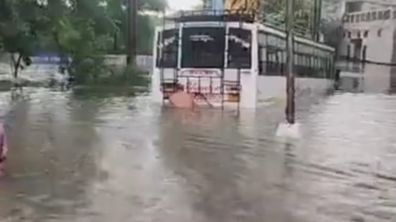 ਜਲੰਧਰ ਵਿੱਚ ਭਾਰੀ ਮੀਂਹ ਕਾਰਨ ਹਾਲਾਤ ਹੋਰ ਵੀ ਵਿਗੜ ਗਏ ਹਨ। ਭਾਰੀ ਮੀਂਹ ਕਾਰਨ ਕਈ ਇਲਾਕੇ ਪਾਣੀ ਵਿੱਚ ਡੁੱਬ ਗਏ ਹਨ ਅਤੇ ਦਮੋਰੀਆ ਪੁਲ ਪੂਰੀ ਤਰ੍ਹਾਂ ਡੁੱਬ ਗਿਆ ਹੈ। ਦਮੋਰੀਆ ਪੁਲ ਦੇ ਹੇਠਾਂ ਇੱਕ ਨਿੱਜੀ ਬੱਸ ਪਾਣੀ ਵਿੱਚ ਫਸ ਗਈ। ਹਾਲਾਂਕਿ, ਖੁਸ਼ਕਿਸਮਤੀ ਨਾਲ ਬੱਸ ਵਿੱਚ ਕੋਈ ਯਾਤਰੀ ਨਹੀਂ ਸੀ। ਮਾਲਕ ਲਗਾਤਾਰ ਬੱਸ ਨੂੰ ਬਾਹਰ ਕੱਢਣ ਦੀ ਕੋਸ਼ਿਸ਼ ਕਰ ਰਿਹਾ ਹੈ। ਸੈਂਟਰਲ ਟਾਊਨ ਦੇ ਅਲੀ ਪੁਲੀ ਚੌਕ ‘ਤੇ, ਸ਼ਹਿਰ ਡੁੱਬਣ ‘ਤੇ ਸਥਾਨਕ ਲੋਕਾਂ ਨੇ ਨੇਤਾਵਾਂ ਲਈ ਪਾਣੀ ਵਿੱਚ ਕੁਰਸੀਆਂ ਰੱਖ ਦਿੱਤੀਆਂ।