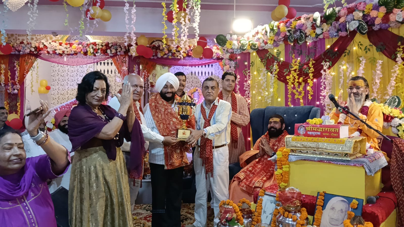 ਸ਼੍ਰੀ ਸ਼੍ਰੀ 108 ਸੰਪੂਰਨਾਨੰਦ ਬ੍ਰਹਮਚਾਰੀ ਅਤੇ ਵਿਧਾਇਕ ਕੁਲਵੰਤ ਸਿੰਘ ਨੇ ਸ਼ਿਰਕਤ ਕੀਤੀ, ਜਿਸ ਨਾਲ ਸ਼ਰਧਾਲੂਆਂ ਦੀ ਵੱਡੀ ਭੀੜ ਇਕੱਠੀ ਹੋਈ। ਭਗਵਾਨ ਕ੍ਰਿਸ਼ਨ ਨੂੰ ਸ਼ਰਧਾਲੂਆਂ ਦੁਆਰਾ ਲਿਆਂਦੇ ਗਏ ਛਪਣ ਤਰ੍ਹਾਂ ਦੇ ਪਕਵਾਨ ਭੇਟ ਕੀਤੇ ਗਏ, ਅਤੇ ਸ਼ਰਧਾਲੂਆਂ ਨੇ ਗੋਵਰਧਨ ਪਰਵਤ ਦੀ ਕਹਾਣੀ ਵੀ ਸੁਣੀ । ਮਹਿਮਾਨਾਂ ਨੇ ਕਥਾਵਾਚਕ ਅਤੇ ਮੰਦਰ ਕਮੇਟੀ ਦੇ ਮੌਜੂਦਾ ਪ੍ਰਧਾਨ ਰਾਜੇਸ਼ ਸ਼ਰਮਾ ਅਤੇ ਉਨ੍ਹਾਂ ਦੀ ਟੀਮ ਦੁਆਰਾ ਕੀਤੇ ਗਏ ਸ਼ਾਨਦਾਰ ਪ੍ਰਬੰਧਾਂ ਦੀ ਪ੍ਰਸ਼ੰਸਾ ਕੀਤੀ। ਇਸ ਮੌਕੇ ਮੁੱਖ ਅਜਮਾਨ ਬਲਰਾਮ ਮਹਿਤਾ, ਸ਼੍ਰੀਮਤੀ ਤਾਰਾ ਮਹਿਤਾ, ਸੁਨੀਲ ਮਹਿਤਾ, ਨੀਤੂ ਮਹਿਤਾ, ਅਜੈ ਮਹਿਤਾ ਅਤੇ ਗੌਰੀ ਮਹਿਤਾ ਦੇ ਨਾਲ-ਨਾਲ ਸ਼੍ਰੀ ਦੁਰਗਾ ਮੰਦਰ ਫੇਜ਼-10 ਦੇ ਮੌਜੂਦਾ ਪ੍ਰਧਾਨ ਰਾਜੇਸ਼ ਸ਼ਰਮਾ, ਜਨਰਲ ਸਕੱਤਰ ਜੇ.ਪੀ. ਤੋਖੀ, ਜੋਗਿੰਦਰਪਾਲ ਡੋਗਰਾ, ਦਿਨੇਸ਼ ਕੌਸ਼ਲ, ਅਜੈ ਮੋਹਤਾ ਅਤੇ ਕੋਮਲ ਟੀਮ ਦੇ ਨਾਲ, ਅਤੇ ਮਹਿਲਾ ਸੰਕੀਰਤਨ ਮੰਡਲ ਪ੍ਰਧਾਨ ਸ਼੍ਰੀਮਤੀ ਮੀਨਾ ਸੈਣੀ ਟੀਮ ਦੇ ਨਾਲ, ਅਤੇ ਮੰਦਰ ਦੇ ਪੁਜਾਰੀ, ਪੰਡਿਤ ਗੋਪਾਲ ਮਨੀ ਮਿਸ਼ਰਾ, ਦੇ ਨਾਲ-ਨਾਲ ਬਾਬਾ ਬਾਲ ਭਾਰਤੀ ਮੰਦਰ ਸਮਾਧਾ ਦੇ ਪ੍ਰਧਾਨ ਤਿਰਲੋਚਨ ਸਿੰਘ, ਸਾਬਕਾ ਕੌਂਸਲਰ ਅਰੁਣ ਗੋਇਲ, ਹਰਮੇਸ਼ ਸਿੰਘ ਕੁੰਭੜਾ ਅਤੇ ਸਾਬਕਾ ਕੌਂਸਲਰ ਰਾਜਿੰਦਰ ਸ਼ਰਮਾ ਨੇ ਵੀ ਸ਼ਿਰਕਤ ਕੀਤੀ। ਮੌਜੂਦ ਪਤਵੰਤਿਆਂ ਨੂੰ ਕਥਾ ਵਿਆਸ ਅਤੇ ਸ਼੍ਰੀ ਦੁਰਗਾ ਮੰਦਰ ਕਮੇਟੀ ਦੇ ਪ੍ਰਧਾਨ ਰਾਜੇਸ਼ ਸ਼ਰਮਾ, ਜਨਰਲ ਸਕੱਤਰ ਜੇਪੀ ਤੋਖੀ ਅਤੇ ਟੀਮ ਵਲੋਂ ਸਨਮਾਨਿਤ ਕੀਤਾ ਗਿਆ। ਮੰਦਰ ਕਮੇਟੀ ਦੇ ਪ੍ਰਧਾਨ ਰਾਜੇਸ਼ ਸ਼ਰਮਾ ਨੇ ਸਾਰੇ ਪਤਵੰਤਿਆਂ ਅਤੇ ਸ਼ਰਧਾਲੂਆਂ ਦਾ ਧੰਨਵਾਦ ਕੀਤਾ।