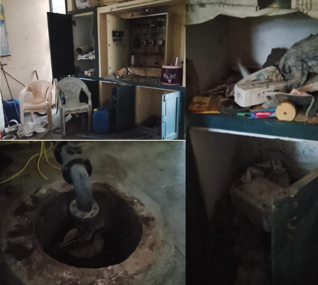 ਫੋਟੋ ਕੈਪਸ਼ਨ, ਉਸ ਵਾਟਰ ਵਰਕਸ ਦਾ ਦ੍ਰਿਸ਼ ਜਿਸ ਤੋਂ ਚੋਰਾਂ ਨੇ ਸਮਾਨ ਚੋਰੀ ਕੀਤਾ ਹੈ ਅਤੇ ਖਿਲਰਿਆ ਪਿਆ ਸਮਾਨ