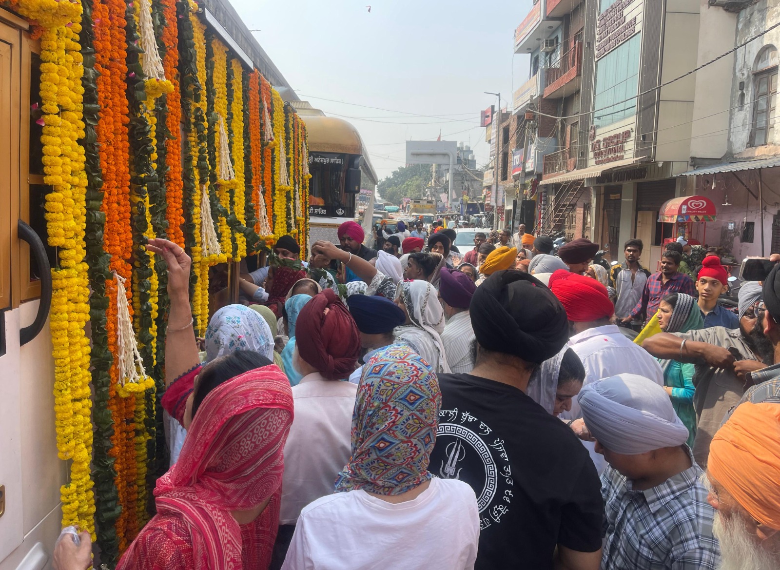 ਨਗਰ ਕੀਰਤਨ ਦੀ ਰਵਾਨਗੀ ਮੌਕੇ ਗੁਰਦੁਆਰਾ ਡੇਰਾ ਬਾਬਾ ਕਰਮ ਸਿੰਘ ਦੇ ਮੁੱਖ ਸੇਵਾਦਾਰ ਬਾਬਾ ਅਮਰਦੀਪ ਸਿੰਘ ਨੇ ਪੰਜ ਪਿਆਰੇ ਸਾਹਿਬਾਨ ਅਤੇ ਹਾਜ਼ਰ ਪ੍ਰਮੁੱਖ ਸ਼ਖ਼ਸੀਅਤਾਂ ਨੂੰ ਸਿਰੋਪਾਓ ਦਿੱਤੇ। ਨਗਰ ਕੀਰਤਨ ਗੁਰਦੁਆਰਾ ਡੇਰਾ ਬਾਬਾ ਕਰਮ ਸਿੰਘ ਤੋਂ ਚੱਲ ਕੇ ਗੁਰਦੁਆਰਾ ਸ਼ਹੀਦ ਕੁਰੰਜਾ, ਸ਼ੀਲਮਪੁਰ, ਲੋਨੀ ਰੋਡ, ਭਜਨਪੁਰਾ, ਵਜੀਰਾਬਾਦ ਤੋਂ ਹੁੰਦਾ ਹੋਇਆ ਗੁਰਦੁਆਰਾ ਨਾਨਕ ਪਿਆਓ ਸਾਹਿਬ ਵਿਖੇ ਪੁੱਜਾ। ਰਸਤੇ ਵਿਚ ਵੱਖ-ਵੱਖ ਪੜਾਵਾਂ ’ਤੇ ਸੰਗਤਾਂ ਨੇ ਸ਼ਰਧਾ ਨਾਲ ਨਗਰ ਕੀਰਤਨ ਦਾ ਭਰਵਾਂ ਸਵਾਗਤ ਕੀਤਾ।