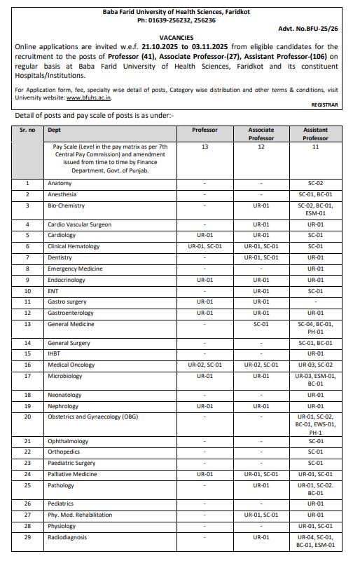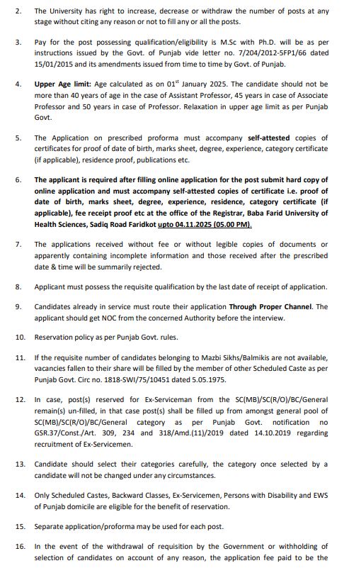 ਬਾਬਾ ਫਰੀਦ ਯੂਨੀਵਰਸਿਟੀ ‘ਚ ਪ੍ਰੋਫੈਸਰਾਂ ਦੀਆਂ ਅਸਾਮੀਆਂ ਲਈ ਅਰਜ਼ੀਆਂ ਦੀ ਮੰਗ ਪੰਜਾਬ ਅਕਤੂਬਰ 25, 2025ਅਕਤੂਬਰ 25, 2025BolePunjab.comLeave a Comment on ਬਾਬਾ ਫਰੀਦ ਯੂਨੀਵਰਸਿਟੀ ‘ਚ ਪ੍ਰੋਫੈਸਰਾਂ ਦੀਆਂ ਅਸਾਮੀਆਂ ਲਈ ਅਰਜ਼ੀਆਂ ਦੀ ਮੰਗ ਫਰੀਦਕੋਟ 25 ਅਕਤੂਬਰ ,ਬੋਲੇ ਪੰਜਾਬ ਬਿਊਰੋ; ਬਾਬਾ ਫਰੀਦ ਯੂਨੀਵਰਸਿਟੀ ਆਫ਼ ਹੈਲਥ ਸਾਇੰਸਿਜ਼, ਫਰੀਦਕੋਟ ਵਿੱਚ 106 ਪ੍ਰੋਫੈਸਰਾਂ ਦੀਆਂ ਅਸਾਮੀਆਂ ਲਈ ਅਰਜ਼ੀਆਂ ਦੀ ਮੰਗ ਕੀਤੀ ਗਈ ਹੈ। ਇਹ ਅਸਾਮੀਆਂ ਰੇਗੂਲਰ ਤੌਰ ਉਤੇ ਹੋਣਗੀਆਂ। ਯੋਗ ਉਮੀਦਵਾਰ 3 ਨਵੰਬਰ 2025 ਤੱਕ ਆਨਲਾਈਨ ਅਪਲਾਈ ਕਰ ਸਕਦੇ ਹਨ। Related Postਪੰਜਾਬ ਨੇ ਸਕੂਲ ਅਧਿਆਪਕਾਂ ਨੂੰ ਕਰੀਅਰ ਮੈਂਟਰ ਵਜੋਂ ਸਿਖਲਾਈ ਦੇਣ ਲਈ ਆਈ.ਆਈ.ਟੀ. ਮਦਰਾਸ ਨਾਲ ਹੱਥ ਮਿਲਾਇਆਦਸੰਬਰ 5, 2025ਸੰਸਦ ਮੈਂਬਰ ਸ਼੍ਰੀ ਮਨੀਸ਼ ਤਿਵਾੜੀ ਨੇ ਲੋਕ ਸਭਾ ਵਿੱਚ ਹਰਿਆਣਾ, ਪੰਜਾਬ ਅਤੇ ਹਿਮਾਚਲ ਪ੍ਰਦੇਸ਼ ਦੇ ਡੈਮਾਂ ਦੀ ਡੀ-ਸਿਲਟਿੰਗ ਅਤੇ ਘਟਦੀ ਸਟੋਰੇਜ ਸਮਰੱਥਾ ਦਾ ਮੁੱਦਾ ਉਠਾਇਆਦਸੰਬਰ 5, 2025ਮੁੱਖ ਪ੍ਰਸ਼ਾਸ਼ਕ ਪੁੱਡਾ ਮੈਡਮ ਨੀਰੂ ਕਤਿਆਲ ਗੁਪਤਾ ਦੇ ਦਫਤਰ ਪੁੱਡਾ ਭਵਨ ਮੋਹਾਲੀ ਵਿਖੇ ਲੜੀਵਾਰ ਭੁੱਖ ਹੜਤਾਲਦਸੰਬਰ 5, 2025Latest Newsਪੰਜਾਬ ਨੇ ਸਕੂਲ ਅਧਿਆਪਕਾਂ ਨੂੰ ਕਰੀਅਰ ਮੈਂਟਰ ਵਜੋਂ ਸਿਖਲਾਈ ਦੇਣ ਲਈ ਆਈ.ਆਈ.ਟੀ. ਮਦਰਾਸ ਨਾਲ ਹੱਥ ਮਿਲਾਇਆਸੰਸਦ ਮੈਂਬਰ ਸ਼੍ਰੀ ਮਨੀਸ਼ ਤਿਵਾੜੀ ਨੇ ਲੋਕ ਸਭਾ ਵਿੱਚ ਹਰਿਆਣਾ, ਪੰਜਾਬ ਅਤੇ ਹਿਮਾਚਲ ਪ੍ਰਦੇਸ਼ ਦੇ ਡੈਮਾਂ ਦੀ ਡੀ-ਸਿਲਟਿੰਗ ਅਤੇ ਘਟਦੀ ਸਟੋਰੇਜ ਸਮਰੱਥਾ ਦਾ ਮੁੱਦਾ ਉਠਾਇਆਮੁੱਖ ਪ੍ਰਸ਼ਾਸ਼ਕ ਪੁੱਡਾ ਮੈਡਮ ਨੀਰੂ ਕਤਿਆਲ ਗੁਪਤਾ ਦੇ ਦਫਤਰ ਪੁੱਡਾ ਭਵਨ ਮੋਹਾਲੀ ਵਿਖੇ ਲੜੀਵਾਰ ਭੁੱਖ ਹੜਤਾਲਪੰਜਾਬ ਵਿੱਚ ਜ਼ਿਲ੍ਹਾ ਪ੍ਰੀਸ਼ਦ ਚੋਣਾਂ ਨੂੰ ਲੈ ਕੇ ਕਾਂਗਰਸ ਨੇ ਹਾਈ ਕੋਰਟ ਦਾ ਦਰਵਾਜ਼ਾ ਖੜਕਾਇਆਬਿਜਲੀ ਸੋਧ ਬਿਲ ਤੇ ਨਵੇਂ ਬੀਜ ਬਿੱਲ ਖਿਲਾਫ ਕਿਰਤੀ ਕਿਸਾਨ ਮੋਰਚਾ ਦੀ ਹੋਈ ਮੀਟਿੰਗPreviousNextLatest Newsਪੰਜਾਬ ਨੇ ਸਕੂਲ ਅਧਿਆਪਕਾਂ ਨੂੰ ਕਰੀਅਰ ਮੈਂਟਰ ਵਜੋਂ ਸਿਖਲਾਈ ਦੇਣ ਲਈ ਆਈ.ਆਈ.ਟੀ. ਮਦਰਾਸ ਨਾਲ ਹੱਥ ਮਿਲਾਇਆਸੰਸਦ ਮੈਂਬਰ ਸ਼੍ਰੀ ਮਨੀਸ਼ ਤਿਵਾੜੀ ਨੇ ਲੋਕ ਸਭਾ ਵਿੱਚ ਹਰਿਆਣਾ, ਪੰਜਾਬ ਅਤੇ ਹਿਮਾਚਲ ਪ੍ਰਦੇਸ਼ ਦੇ ਡੈਮਾਂ ਦੀ ਡੀ-ਸਿਲਟਿੰਗ ਅਤੇ ਘਟਦੀ ਸਟੋਰੇਜ ਸਮਰੱਥਾ ਦਾ ਮੁੱਦਾ ਉਠਾਇਆਮੁੱਖ ਪ੍ਰਸ਼ਾਸ਼ਕ ਪੁੱਡਾ ਮੈਡਮ ਨੀਰੂ ਕਤਿਆਲ ਗੁਪਤਾ ਦੇ ਦਫਤਰ ਪੁੱਡਾ ਭਵਨ ਮੋਹਾਲੀ ਵਿਖੇ ਲੜੀਵਾਰ ਭੁੱਖ ਹੜਤਾਲਪੰਜਾਬ ਵਿੱਚ ਜ਼ਿਲ੍ਹਾ ਪ੍ਰੀਸ਼ਦ ਚੋਣਾਂ ਨੂੰ ਲੈ ਕੇ ਕਾਂਗਰਸ ਨੇ ਹਾਈ ਕੋਰਟ ਦਾ ਦਰਵਾਜ਼ਾ ਖੜਕਾਇਆਬਿਜਲੀ ਸੋਧ ਬਿਲ ਤੇ ਨਵੇਂ ਬੀਜ ਬਿੱਲ ਖਿਲਾਫ ਕਿਰਤੀ ਕਿਸਾਨ ਮੋਰਚਾ ਦੀ ਹੋਈ ਮੀਟਿੰਗਪਾਈਟੈਕਸ ਵਿਖੇ ਅਪਾਹਜਾਂ ਅਤੇ ਬਜ਼ੁਰਗਾਂ ਲਈ ਵ੍ਹੀਲਚੇਅਰ ਦੀ ਸਹੂਲਤਚੰਡੀਗੜ੍ਹ ਪੁਲਿਸ ਦੇ ਸ਼ਰਾਬੀ ASI ਨੇ 10 ਵਾਹਨਾਂ ਨੂੰ ਮਾਰੀ ਟੱਕਰਪੰਜਾਬ ਵਿੱਚ ਰੇਲਵੇ ਪਟੜੀਆਂ ‘ਤੇ ਕਿਸਾਨਾਂ ਅਤੇ ਪੁਲਿਸ ਵਿਚਕਾਰ ਝੜਪਾਂਦੇਸ਼ ਭਗਤ ਯੂਨੀਵਰਸਿਟੀ ਨੇ ਕਰਵਾਈ ਅੰਤਰਰਾਸ਼ਟਰੀ ਕਾਨਫਰੰਸ ਅਤੇ ਅਗਾਂਹਵਧੂ ਕਿਸਾਨ ਮਿਲਣੀਆਮ ਆਦਮੀ ਪਾਰਟੀ ਵੱਲੋਂ ਨਾਮਜ਼ਦਗੀ ਪੱਤਰ ਦਾਖਲ ਕਰਨ ਦੌਰਾਨ ਸ਼ਰੇਆਮ ਗੁੰਡਾਗਰਦੀ ਦੀਆਂ ਘਟਨਾਵਾਂ ਅਤੇ ਚੋਣ ਪ੍ਰਕਿਰਿਆ ਦੌਰਾਨ ਸਰਕਾਰੀ ਮਸ਼ੀਨਰੀ ਦੀ ਕਥਿਤ ਦੁਰਵਰਤੋਂ ਲੋਕਤੰਤਰ ਲਈ ਖ਼ਤਰਨਾਕ – ਕੈਂਥ ਪੁਲਿਸ ਮੁਲਾਜ਼ਮਾਂ ‘ਤੇ ਵਰਦੀ ‘ਚ ਰੀਲਾਂ ਬਣਾਉਣ ‘ਤੇ ਲੱਗੀ ਪਾਬੰਦੀਜਲੰਧਰ ‘ਚ ਰੋਡਵੇਜ਼ ਬੱਸ ਨੇ ਸਕੂਟਰ ਨੂੰ ਟੱਕਰ ਮਾਰੀ, ਪੁੱਤ ਦੀ ਮੌਤ ਪਿਤਾ ਗੰਭੀਰ ਜ਼ਖ਼ਮੀ PreviousNext