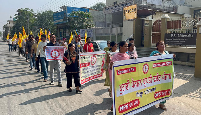ਪੁਰਾਣੀ ਪੈਨਸ਼ਨ ਪ੍ਰਾਪਤੀ ਫਰੰਟ(ਪੀ.ਪੀ.ਪੀ.ਐੱਫ) ਵੱਲੋਂ ਸੂਬਾਈ ਸੱਦੇ ਤਹਿਤ ਸਥਾਨਕ ਤਰਕਸ਼ੀਲ ਹਾਲ ਵਿਖੇ ਜ਼ਿਲਾ ਪੱਧਰੀ ਕਨਵੈਨਸ਼ਨ ਕਰਕੇ ਕੈਬਨਿਟ ਮੰਤਰੀ ਡਾਕਟਰ ਬਲਬੀਰ ਸਿੰਘ ਦੀ ਰਿਹਾਇਸ਼ ਤੱਕ ਰੋਸ ਮਾਰਚ ਕੀਤਾ ਗਿਆ।