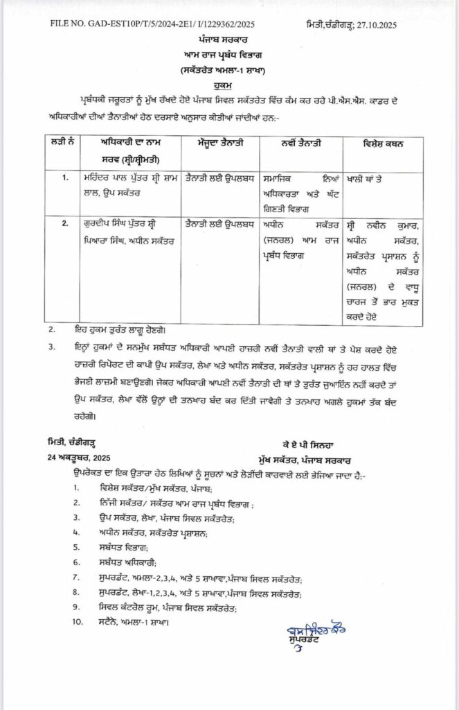 2 PSS ਅਫ਼ਸਰਾਂ ਦਾ ਤਬਾਦਲਾ ਚੰਡੀਗੜ੍ਹ ਪੰਜਾਬ ਅਕਤੂਬਰ 27, 2025ਅਕਤੂਬਰ 27, 2025BolePunjab.comLeave a Comment on 2 PSS ਅਫ਼ਸਰਾਂ ਦਾ ਤਬਾਦਲਾ ਚੰਡੀਗੜ੍ਹ, 27 ਅਕਤੂਬਰ ,ਬੋਲੇ ਪੰਜਾਬ ਬਿਉਰੋ; ਪੰਜਾਬ ਵਿਚ 2 PSS ਅਫ਼ਸਰਾਂ ਦੇ ਤਬਾਦਲੇ ਕੀਤੇ ਗਏ ਹਨ Related Postਪੰਜਾਬ ਨੇ ਸਕੂਲ ਅਧਿਆਪਕਾਂ ਨੂੰ ਕਰੀਅਰ ਮੈਂਟਰ ਵਜੋਂ ਸਿਖਲਾਈ ਦੇਣ ਲਈ ਆਈ.ਆਈ.ਟੀ. ਮਦਰਾਸ ਨਾਲ ਹੱਥ ਮਿਲਾਇਆਦਸੰਬਰ 5, 2025ਪੰਜਾਬ ਵਿੱਚ ਜ਼ਿਲ੍ਹਾ ਪ੍ਰੀਸ਼ਦ ਚੋਣਾਂ ਨੂੰ ਲੈ ਕੇ ਕਾਂਗਰਸ ਨੇ ਹਾਈ ਕੋਰਟ ਦਾ ਦਰਵਾਜ਼ਾ ਖੜਕਾਇਆਦਸੰਬਰ 5, 2025ਚੰਡੀਗੜ੍ਹ ਪੁਲਿਸ ਦੇ ਸ਼ਰਾਬੀ ASI ਨੇ 10 ਵਾਹਨਾਂ ਨੂੰ ਮਾਰੀ ਟੱਕਰਦਸੰਬਰ 5, 2025Latest Newsਪੰਜਾਬ ਨੇ ਸਕੂਲ ਅਧਿਆਪਕਾਂ ਨੂੰ ਕਰੀਅਰ ਮੈਂਟਰ ਵਜੋਂ ਸਿਖਲਾਈ ਦੇਣ ਲਈ ਆਈ.ਆਈ.ਟੀ. ਮਦਰਾਸ ਨਾਲ ਹੱਥ ਮਿਲਾਇਆਸੰਸਦ ਮੈਂਬਰ ਸ਼੍ਰੀ ਮਨੀਸ਼ ਤਿਵਾੜੀ ਨੇ ਲੋਕ ਸਭਾ ਵਿੱਚ ਹਰਿਆਣਾ, ਪੰਜਾਬ ਅਤੇ ਹਿਮਾਚਲ ਪ੍ਰਦੇਸ਼ ਦੇ ਡੈਮਾਂ ਦੀ ਡੀ-ਸਿਲਟਿੰਗ ਅਤੇ ਘਟਦੀ ਸਟੋਰੇਜ ਸਮਰੱਥਾ ਦਾ ਮੁੱਦਾ ਉਠਾਇਆਮੁੱਖ ਪ੍ਰਸ਼ਾਸ਼ਕ ਪੁੱਡਾ ਮੈਡਮ ਨੀਰੂ ਕਤਿਆਲ ਗੁਪਤਾ ਦੇ ਦਫਤਰ ਪੁੱਡਾ ਭਵਨ ਮੋਹਾਲੀ ਵਿਖੇ ਲੜੀਵਾਰ ਭੁੱਖ ਹੜਤਾਲਪੰਜਾਬ ਵਿੱਚ ਜ਼ਿਲ੍ਹਾ ਪ੍ਰੀਸ਼ਦ ਚੋਣਾਂ ਨੂੰ ਲੈ ਕੇ ਕਾਂਗਰਸ ਨੇ ਹਾਈ ਕੋਰਟ ਦਾ ਦਰਵਾਜ਼ਾ ਖੜਕਾਇਆਬਿਜਲੀ ਸੋਧ ਬਿਲ ਤੇ ਨਵੇਂ ਬੀਜ ਬਿੱਲ ਖਿਲਾਫ ਕਿਰਤੀ ਕਿਸਾਨ ਮੋਰਚਾ ਦੀ ਹੋਈ ਮੀਟਿੰਗPreviousNextLatest Newsਪੰਜਾਬ ਨੇ ਸਕੂਲ ਅਧਿਆਪਕਾਂ ਨੂੰ ਕਰੀਅਰ ਮੈਂਟਰ ਵਜੋਂ ਸਿਖਲਾਈ ਦੇਣ ਲਈ ਆਈ.ਆਈ.ਟੀ. ਮਦਰਾਸ ਨਾਲ ਹੱਥ ਮਿਲਾਇਆਸੰਸਦ ਮੈਂਬਰ ਸ਼੍ਰੀ ਮਨੀਸ਼ ਤਿਵਾੜੀ ਨੇ ਲੋਕ ਸਭਾ ਵਿੱਚ ਹਰਿਆਣਾ, ਪੰਜਾਬ ਅਤੇ ਹਿਮਾਚਲ ਪ੍ਰਦੇਸ਼ ਦੇ ਡੈਮਾਂ ਦੀ ਡੀ-ਸਿਲਟਿੰਗ ਅਤੇ ਘਟਦੀ ਸਟੋਰੇਜ ਸਮਰੱਥਾ ਦਾ ਮੁੱਦਾ ਉਠਾਇਆਮੁੱਖ ਪ੍ਰਸ਼ਾਸ਼ਕ ਪੁੱਡਾ ਮੈਡਮ ਨੀਰੂ ਕਤਿਆਲ ਗੁਪਤਾ ਦੇ ਦਫਤਰ ਪੁੱਡਾ ਭਵਨ ਮੋਹਾਲੀ ਵਿਖੇ ਲੜੀਵਾਰ ਭੁੱਖ ਹੜਤਾਲਪੰਜਾਬ ਵਿੱਚ ਜ਼ਿਲ੍ਹਾ ਪ੍ਰੀਸ਼ਦ ਚੋਣਾਂ ਨੂੰ ਲੈ ਕੇ ਕਾਂਗਰਸ ਨੇ ਹਾਈ ਕੋਰਟ ਦਾ ਦਰਵਾਜ਼ਾ ਖੜਕਾਇਆਬਿਜਲੀ ਸੋਧ ਬਿਲ ਤੇ ਨਵੇਂ ਬੀਜ ਬਿੱਲ ਖਿਲਾਫ ਕਿਰਤੀ ਕਿਸਾਨ ਮੋਰਚਾ ਦੀ ਹੋਈ ਮੀਟਿੰਗਪਾਈਟੈਕਸ ਵਿਖੇ ਅਪਾਹਜਾਂ ਅਤੇ ਬਜ਼ੁਰਗਾਂ ਲਈ ਵ੍ਹੀਲਚੇਅਰ ਦੀ ਸਹੂਲਤਚੰਡੀਗੜ੍ਹ ਪੁਲਿਸ ਦੇ ਸ਼ਰਾਬੀ ASI ਨੇ 10 ਵਾਹਨਾਂ ਨੂੰ ਮਾਰੀ ਟੱਕਰਪੰਜਾਬ ਵਿੱਚ ਰੇਲਵੇ ਪਟੜੀਆਂ ‘ਤੇ ਕਿਸਾਨਾਂ ਅਤੇ ਪੁਲਿਸ ਵਿਚਕਾਰ ਝੜਪਾਂਦੇਸ਼ ਭਗਤ ਯੂਨੀਵਰਸਿਟੀ ਨੇ ਕਰਵਾਈ ਅੰਤਰਰਾਸ਼ਟਰੀ ਕਾਨਫਰੰਸ ਅਤੇ ਅਗਾਂਹਵਧੂ ਕਿਸਾਨ ਮਿਲਣੀਆਮ ਆਦਮੀ ਪਾਰਟੀ ਵੱਲੋਂ ਨਾਮਜ਼ਦਗੀ ਪੱਤਰ ਦਾਖਲ ਕਰਨ ਦੌਰਾਨ ਸ਼ਰੇਆਮ ਗੁੰਡਾਗਰਦੀ ਦੀਆਂ ਘਟਨਾਵਾਂ ਅਤੇ ਚੋਣ ਪ੍ਰਕਿਰਿਆ ਦੌਰਾਨ ਸਰਕਾਰੀ ਮਸ਼ੀਨਰੀ ਦੀ ਕਥਿਤ ਦੁਰਵਰਤੋਂ ਲੋਕਤੰਤਰ ਲਈ ਖ਼ਤਰਨਾਕ – ਕੈਂਥ ਪੁਲਿਸ ਮੁਲਾਜ਼ਮਾਂ ‘ਤੇ ਵਰਦੀ ‘ਚ ਰੀਲਾਂ ਬਣਾਉਣ ‘ਤੇ ਲੱਗੀ ਪਾਬੰਦੀਜਲੰਧਰ ‘ਚ ਰੋਡਵੇਜ਼ ਬੱਸ ਨੇ ਸਕੂਟਰ ਨੂੰ ਟੱਕਰ ਮਾਰੀ, ਪੁੱਤ ਦੀ ਮੌਤ ਪਿਤਾ ਗੰਭੀਰ ਜ਼ਖ਼ਮੀ PreviousNext