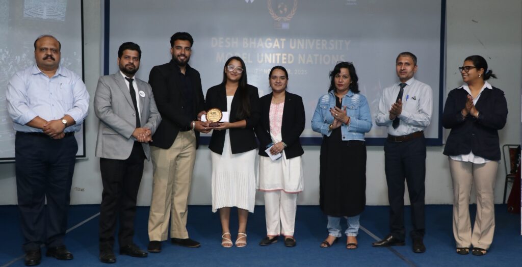 ਡੀਬੀਯੂ ਐਮਯੂਐਨ 2025 ਕਮੇਟੀ ਦੇ ਨਤੀਜੇ ਵਿੱਚ ਸਰਵੋਤਮ ਡੈਲੀਗੇਟ: ਰੋਹਿਣੀ, ਸੀਜੀਸੀ ਯੂਨੀਵਰਸਿਟੀ, ਉੱਚ ਪ੍ਰਸ਼ੰਸਾ: ਇਦਾ ਬਲਦੇਹ, ਦੇਸ਼ ਭਗਤ ਯੂਨੀਵਰਸਿਟੀ ਅਤੇ ਮਾਨਸੀ ਚੌਹਾਨ, ਦੇਸ਼ ਭਗਤ ਯੂਨੀਵਰਸਿਟੀ ਨੂੰ ਵਿਸ਼ੇਸ਼ ਇਨਾਮ ਮਿਲਿਆ।