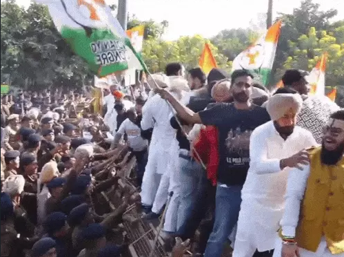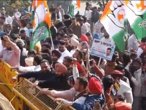 ਚੰਡੀਗੜ੍ਹ ਦੇ ਗਵਰਨਰ ਹਾਊਸ ਜਾਣ ਵਾਲੇ ਕਾਂਗਰਸੀ ਆਗੂਆਂ ਨੂੰ ਰੋਕਿਆ ਗਿਆ: ਪੁਲਿਸ ਨਾਲ ਝੜਪ, ਬੈਰੀਕੇਡ ਟੱਪੇ
