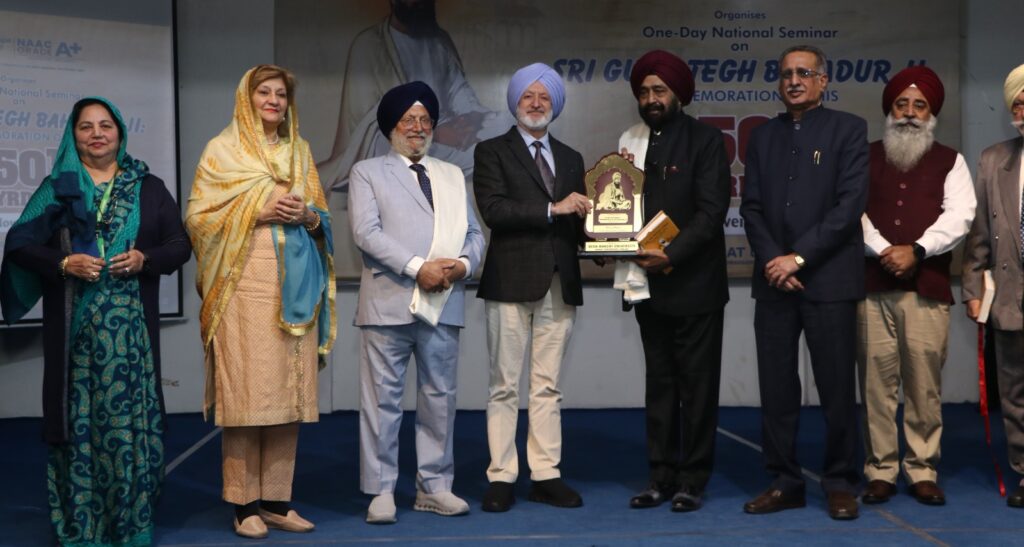 ਸ੍ਰੀ ਗੁਰੂ ਤੇਗ ਬਹਾਦਰ ਜੀ ਦੇ 350ਵੇਂ ਸ਼ਹੀਦੀ ਦਿਵਸ ਸਬੰਧੀ ਪੰਜਾਬ ਸਰਕਾਰ ਵੱਲੋਂ ਆਯੋਜਿਤ ਕੀਤੇ ਜਾ ਰਹੇ ਪ੍ਰੋਗਰਾਮਾਂ ਤਹਿਤ, ਦੇਸ਼ ਭਗਤ ਯੂਨੀਵਰਸਿਟੀ, ਮੰਡੀ ਗੋਬਿੰਦਗੜ੍ਹ ਵਿਖੇ ਚਾਂਸਲਰ ਡਾ. ਜ਼ੋਰਾ ਸਿੰਘ ਅਤੇ ਪ੍ਰੋ-ਚਾਂਸਲਰ ਡਾ. ਤੇਜਿੰਦਰ ਕੌਰ ਦੀ ਅਗਵਾਈ ਹੇਠ ਇੱਕ ਰੋਜ਼ਾ ਰਾਸ਼ਟਰੀ ਸੈਮੀਨਾਰ ਕਰਵਾਇਆ ਗਿਆ। ।