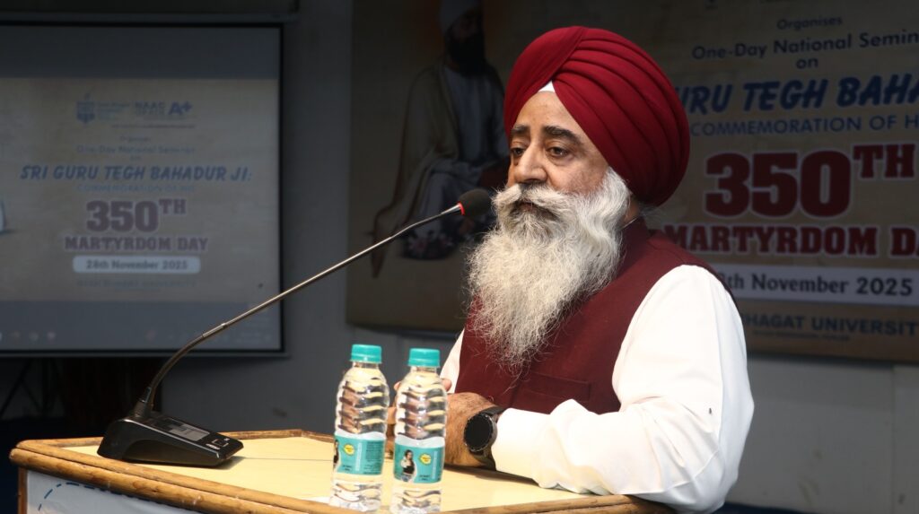 ਇਕੱਠ ਨੂੰ ਸੰਬੋਧਨ ਕਰਦੇ ਹੋਏ, ਡਾ. ਅਮਰਜੀਤ ਸਿੰਘ, ਪ੍ਰੋ-ਵਾਈਸ ਚਾਂਸਲਰ (ਅਕਾਦਮਿਕ) ਨੇ ਜ਼ਿਕਰ ਕੀਤਾ ਕਿ ਗੁਰੂ ਤੇਗ ਬਹਾਦਰ ਜੀ ‘ਹਿੰਦ ਦੀ ਚਾਦਰ’ – ਬ੍ਰਹਿਮੰਡ ਦੇ ਰੱਖਿਅਕ ਸਨ, ਅਤੇ ਇਹੀ ਕਾਰਨ ਹੈ ਕਿ ਦੁਨੀਆਂ ਭਰ ਦੇ 142 ਤੋਂ ਵੱਧ ਦੇਸ਼ਾਂ ਵਿੱਚ ਉਨ੍ਹਾਂ ਦੀ ਸ਼ਹਾਦਤ ਨੂੰ ਯਾਦ ਕੀਤਾ ਜਾਂਦਾ ਹੈ।