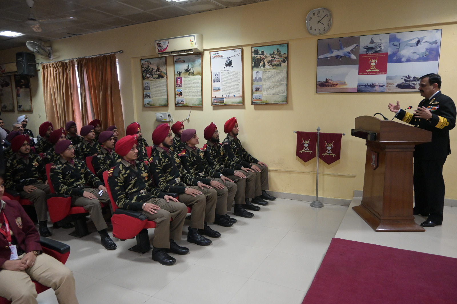 ਐਮ.ਆਰ.ਐਸ.ਏ.ਐਫ.ਪੀ.ਆਈ. ਦੇ ਕੈਡਿਟਾਂ ਅਤੇ ਸ਼ੈਮਰੌਕ ਸੀਨੀਅਰ ਸੈਕੰਡਰੀ ਸਕੂਲ ਦੇ ਵਿਦਿਆਰਥੀਆਂ ਨੂੰ ਸੰਬੋਧਨ ਕਰਦੇ ਹੋਏ, ਵਾਈਸ ਐਡਮਿਰਲ ਸੰਜੇ ਵਾਤਸਯਨ ਨੇ , ਪੰਜਾਬ ਦੀ ਸਮੁੰਦਰੀ ਵਿਰਾਸਤ ਨੂੰ ਉਜਾਗਰ ਕਰਦੇ ਹੋਏ ਸਾਬਕਾ ਜਲ ਸੈਨਾ ਮੁਖੀ ਐਡਮਿਰਲ ਕਰਮਬੀਰ ਸਿੰਘ ਦਾ ਹਵਾਲਾ ਦਿੰਦਿਆਂ ਸੂਬੇ ਦੇ ਨੌਜਵਾਨਾਂ ਨੂੰ ਪ੍ਰੇਰਿਤ ਕੀਤਾ। ਉਨ੍ਹਾਂ ਨੇ ਰਾਸ਼ਟਰੀ ਰੱਖਿਆ, ਸਮੁੰਦਰੀ ਹਿੱਤਾਂ ਦੀ ਰਾਖੀ ਅਤੇ ਵਿਸ਼ਵ ਪੱਧਰ ’ਤੇ ਭਾਰਤ ਦੇ ਵੱਕਾਰ ਨੂੰ ਪੇਸ਼ ਕਰਨ ਵਿੱਚ ਭਾਰਤੀ ਜਲ ਸੈਨਾ ਦੀ ਅਹਿਮ ਭੂਮਿਕਾ ਬਾਰੇ ਵਿਸਥਾਰ ਨਾਲ ਦੱਸਿਆ।