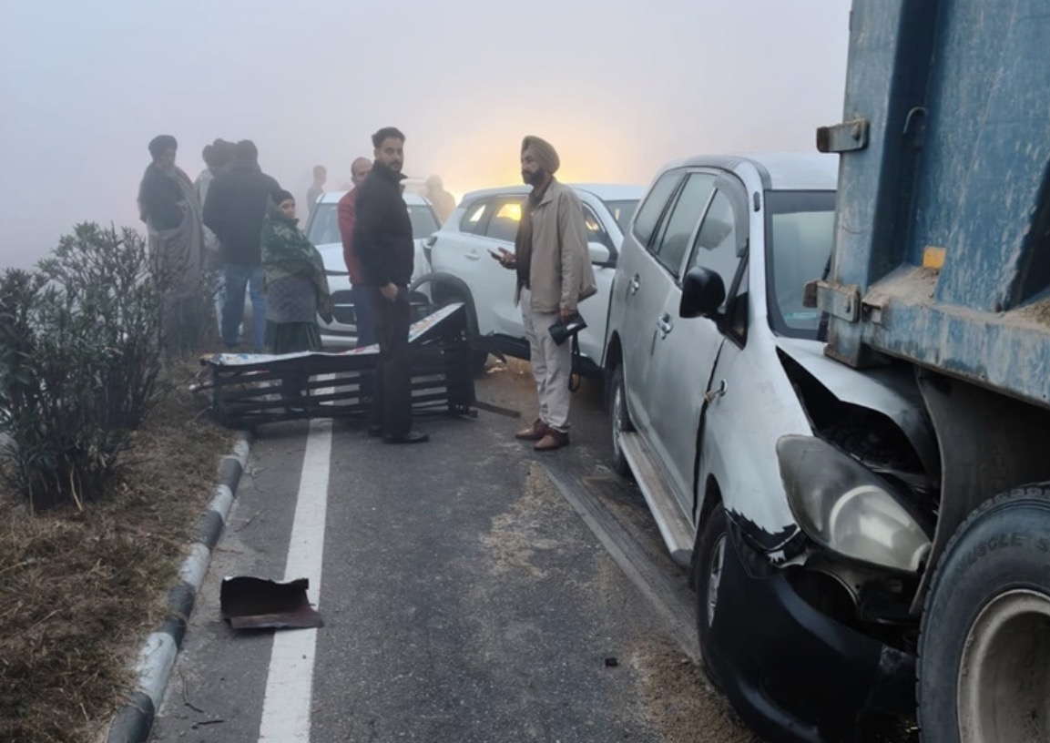 ਸਵੇਰੇ ਸੰਘਣੀ ਧੁੰਦ ਨੇ ਪੰਜਾਬ ਦੇ ਕਈ ਇਲਾਕਿਆਂ ਨੂੰ ਆਪਣੀ ਲਪੇਟ ਵਿੱਚ ਲੈ ਲਿਆ।ਤਾਜ਼ਾ ਘਟਨਾ ਜਲੰਧਰ-ਜੰਮੂ ਰਾਸ਼ਟਰੀ ਰਾਜਮਾਰਗ ‘ਤੇ ਕਾਲਾ ਬਕਰਾ ਪਿੰਡ ਦੇ ਨੇੜੇ ਵਾਪਰੀ, ਜਿੱਥੇ ਧੁੰਦ ਕਾਰਨ ਪੰਜ ਵਾਹਨ ਆਪਸ ਵਿੱਚ ਟਕਰਾ ਗਏ।
