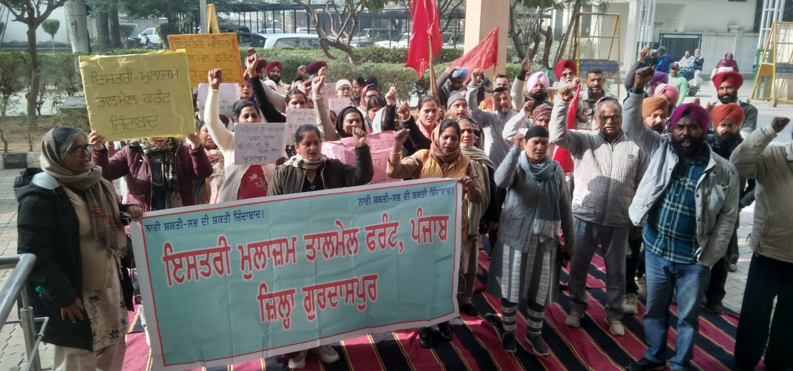 ਅੱਜ ਗੁਰੂ ਨਾਨਕ ਪਾਰਕ ਗੁਰਦਾਸਪੁਰ ਵਿਖੇ ਇਸਤਰੀ ਮੁਲਾਜ਼ਮ ਤਾਲਮੇਲ ਫਰੰਟ ਵੱਲੋਂ ਬੀਪੀਓ ਪੋਹਲਾ ਸਿੰਘ ਖਿਲਾਫ ਪ੍ਰਸ਼ਾਸ਼ਨ ਦੀ ਢਿੱਲੀ ਕਾਰਗੁਜ਼ਾਰੀ ਖਿਲਾਫ ਰੈਲੀ ਕਰਨ ਉਪਰੰਤ ਡਿਪਟੀ ਕਮਿਸ਼ਨਰ ਦਫਤਰ ਗੁਰਦਾਸਪੁਰ ਮੂਹਰੇ ਧਰਨਾ ਪ੍ਰਦਰਸ਼ਨ ਕੀਤਾ ਅਤੇ ਡਿਪਟੀ ਕਮਿਸ਼ਨਰ ਗੁਰਦਾਸਪੁਰ ਦੀ ਗੈਰ ਮੌਜੂਦਗੀ ਵਿੱਚ ਐੱਸ ਡੀ ਐੱਮ ਗੁਰਦਾਸਪੁਰ ਨੂੰ ਮੰਗ ਪੱਤਰ ਸੌਂਪਿਆ ਗਿਆ। ਅਤੇ ਦੋ ਦਿਨਾਂ ਵਿੱਚ ਕਾਰਵਾਈ ਕਰਨ ਦਾ ਭਰੋਸਾ ਦਿੱਤਾ।ਇਸ ਮੌਕੇ ਸਟੇਜ ਸਕੱਤਰ ਦੀ ਭੂਮਿਕਾ ਬਲਵਿੰਦਰ ਕੌਰ ਰਾਵਲਪਿੰਡੀ ਨੇ ਨਿਭਾਈ।