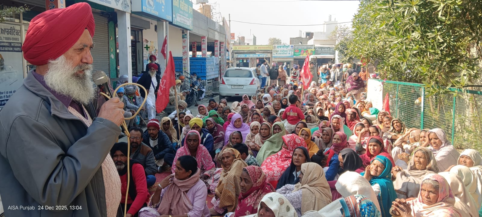 ਮੋਦੀ ਸਰਕਾਰ ਵਲੋਂ ਪਿਛਲੇ ਵੀਹ ਸਾਲ ਤੋਂ ਚੱਲ ਰਹੀ ਮਗਨਰੇਗਾ ਸਕੀਮ ਦਾ ਖਾਤਮਾ ਕਰਨ ਲਈ ਨਵਾਂ ਕਾਨੂੰਨ ਬਣਾਉਣ ਦਾ ਵਿਰੋਧ ਕਰਦੇ ਹੋਏ ਅੱਜ ਇਥੇ ਬਲਾਕ ਦਫ਼ਤਰ ਸਾਹਮਣੇ ਸੈਂਕੜੇ ਮਜ਼ਦੂਰਾਂ ਵਲੋਂ ਇਕ ਵਿਸ਼ਾਲ ਧਰਨਾ ਦਿੱਤਾ ਗਿਆ ਅਤੇ ਨਵੇਂ ਕਾਨੂੰਨ ਨੂੰ ਵਾਪਿਸ ਲੈਣ ਦੀ ਮੰਗ ਕਰਦੇ ਹੋਏ , ਪੰਜਾਬ ਸਰਕਾਰ ਤੋਂ ਮੰਗ ਕੀਤੀ ਗਈ ਕਿ ਹਰ ਪਿੰਡ ਵਿੱਚ ਮਨਰੇਗਾ ਦਾ ਕੰਮ ਤੁਰੰਤ ਸ਼ੁਰੂ ਕੀਤਾ ਜਾਵੇ।