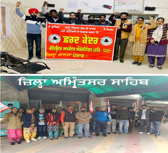 ਫਰਦ ਕੇਂਦਰ ਕੰਪਿਊਟਰ ਆਪਰੇਟਰਾਂ ਲੰਮੇ ਸਮੇਂ ਤੋਂ ਲਮਕ ਰਹੀਆਂ ਜਾਇਜ਼ ਮੰਗਾਂ ਨੂੰ ਅਣਡਿੱਠਾ ਕਰ ਰਹੀ ਸਰਕਾਰ ਖ਼ਿਲਾਫ਼ ਪੰਜਾਬ ਭਰ ਵਿੱਚ ਤਿੱਖਾ ਰੋਸ ਪ੍ਰਦਰਸ਼ਨ