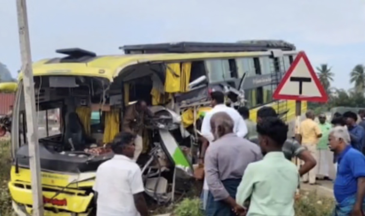ਪੁਲਿਸ ਦੇ ਅਨੁਸਾਰ, ਚੇਨਈ ਤੋਂ ਮਦੁਰਾਈ ਜਾ ਰਹੀ ਇੱਕ ਨਿੱਜੀ ਬੱਸ ਨੂੰ ਅੱਜ ਐਤਵਾਰ ਸਵੇਰੇ ਪਾਲਾਪੱਟੀ ਖੇਤਰ ਵਿੱਚ ਸੜਕ ਕਿਨਾਰੇ ਇੱਕ ਚਾਹ ਦੀ ਦੁਕਾਨ ਦੇ ਨੇੜੇ ਰੋਕਿਆ ਗਿਆ। ਦੱਸਿਆ ਜਾ ਰਿਹਾ ਹੈ ਕਿ ਡਰਾਈਵਰ ਕੁਝ ਦੇਰ ਲਈ ਬੱਸ ‘ਚੋਂ ਉਤਰਿਆ ਹੋਇਆ ਸੀ। ਇਸ ਦੌਰਾਨ, ਚੇਨਈ ਤੋਂ ਮਾਰਥੰਡਮ ਜਾ ਰਹੀ ਇੱਕ ਹੋਰ ਨਿੱਜੀ ਬੱਸ ਨੇ ਕੰਟਰੋਲ ਗੁਆ ਦਿੱਤਾ ਅਤੇ ਤੇਜ਼ ਰਫ਼ਤਾਰ ਨਾਲ ਖੜੀ ਬੱਸ ਦੇ ਪਿਛਲੇ ਹਿੱਸੇ ਵਿੱਚ ਜਾ ਵੱਜੀ।