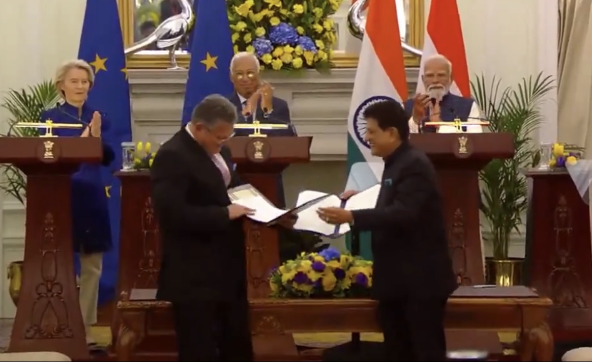 ਇਸ ਤੋਂ ਪਹਿਲਾਂ ਅੱਜ ਮੰਗਲਵਾਰ ਨੂੰ ਇੱਕ ਸਮਾਗਮ ਨੂੰ ਸੰਬੋਧਨ ਕਰਦੇ ਹੋਏ ਪ੍ਰਧਾਨ ਮੰਤਰੀ ਮੋਦੀ ਨੇ ਐਲਾਨ ਕੀਤਾ ਕਿ ਭਾਰਤ ਅਤੇ ਯੂਰਪੀ ਸੰਘ ਵਿਚਕਾਰ ਇੱਕ FTA ‘ਤੇ ਸਹਿਮਤੀ ਬਣ ਗਈ ਹੈ। ਇਸਦੀ ਚਰਚਾ ਦੁਨੀਆ ਭਰ ਵਿੱਚ “ਮਦਰ ਆਫ ਆਲ ਡੀਲਜ” ਵਜੋਂ ਕੀਤੀ ਜਾ ਰਹੀ ਹੈ।