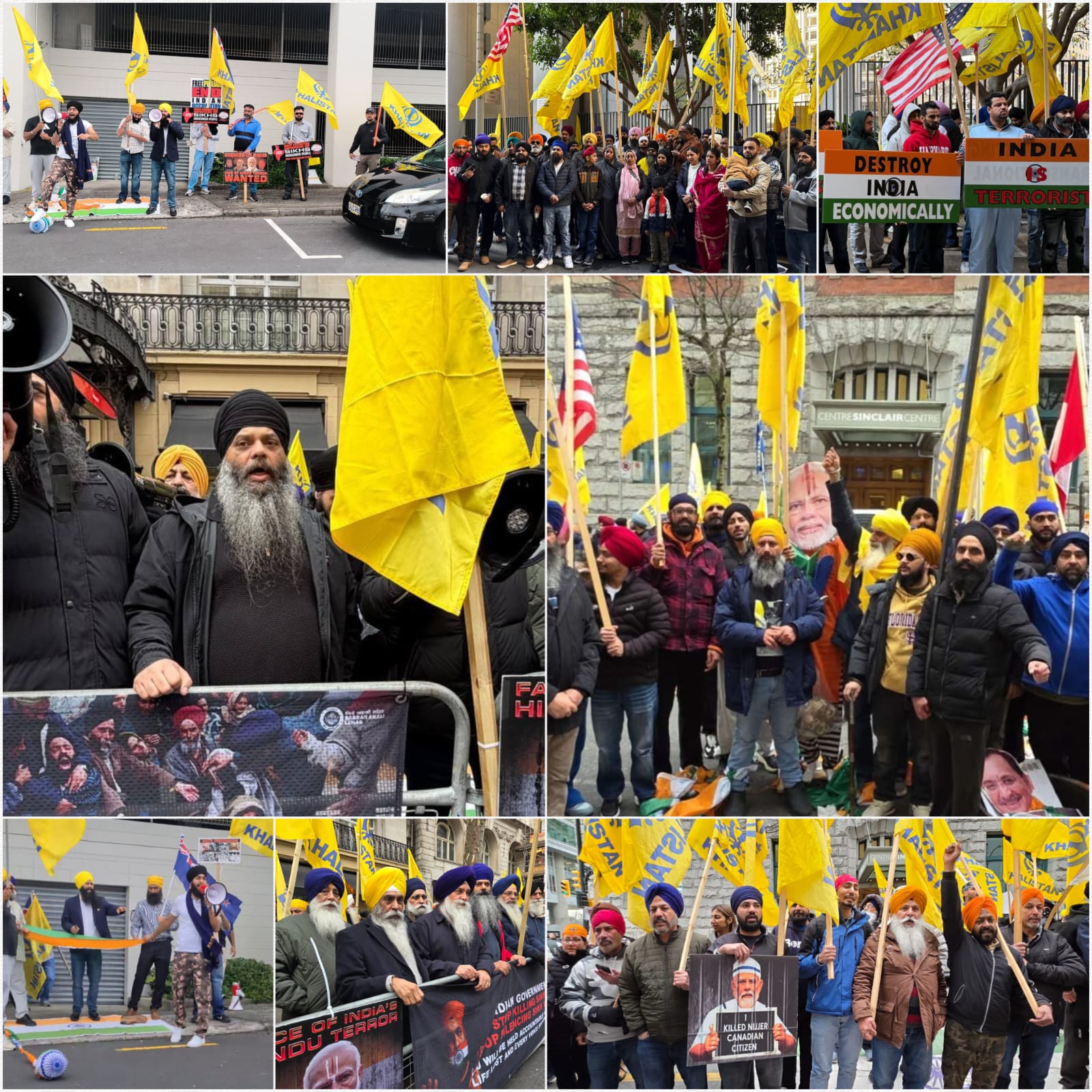 ਲੰਡਨ, ਇਟਲੀ, ਕੈਨੇਡਾ ਦੇ ਸਰੀ, ਓਟਾਵਾ, ਅਮਰੀਕਾ, ਨਿਊਜੀਲੈਂਡ, ਆਸਟ੍ਰੇਲੀਆ, ਜਰਮਨੀ ਸਮੇਤ ਹੋਰ ਕਈ ਦੇਸ਼ਾਂ ਵਿਚ ਆਜ਼ਾਦੀਪਸੰਦ ਸਿੱਖ/ ਪੰਜਾਬੀ ਖਾਲਿਸਤਾਨ ਪੱਖੀ ਨਾਅਰੇ ਲਗਾਉਂਦੇ ਹੋਏ, ਹਿੰਦੁਸਤਾਨ ਦੇ ਸ਼ਰਾਫ਼ਤ ਘਰ ਦੇ ਬਾਹਰ ਵਡੀ ਗਿਣਤੀ ਵਿਚ ਇਕੱਠੇ ਹੋਏ ਅਤੇ ਹਿੰਦੁਸਤਾਨੀ ਹਾਈ ਕਮਿਸ਼ਨ ਦੇ ਬਾਹਰ 26 ਜਨਵਰੀ ਨੂੰ ‘ਕਾਲਾ ਦਿਵਸ’ ਮਨਾਉਂਦੇ ਹੋਏ ਇਸ ਦਾ ਵੱਡੇ ਪੱਧਰ ਤੇ ਵਿਰੋਧ ਪ੍ਰਦਰਸ਼ਨ ਕੀਤਾ। ਖਾਲਿਸਤਾਨੀ ਪ੍ਰਦਰਸ਼ਨਕਾਰੀ ਹਿੰਦੁਸਤਾਨੀ ਸਰਕਾਰ ਵਿਰੁੱਧ ਵਿਰੋਧ ਪ੍ਰਦਰਸ਼ਨ ਕਰਨ ਲਈ ਇਕੱਠੇ ਹੋਏ, ਨਾਅਰੇਬਾਜ਼ੀ ਕਰਦੇ ਹੋਏ ਅਤੇ ਵੱਖਰੇ ਸਿੱਖ ਰਾਜ ਦੀ ਸਥਾਪਨਾ ਦੀ ਮੰਗ ਕਰਦੇ ਬੈਨਰ ਫੜ ਕੇ ਨਜਰੀ ਪੈ ਰਹੇ ਸਨ । ਭਾਈ ਪਰਮਜੀਤ ਸਿੰਘ ਪੰਮਾ ਨੇ ਹਿੰਦੁਸਤਾਨ ਦੀਆਂ ਨੀਤੀਆਂ ਦੀ ਆਲੋਚਨਾ ਕੀਤੀ, ਖਾਸ ਕਰਕੇ ਪੰਜਾਬ ਵਿੱਚ ਮਨੁੱਖੀ ਅਧਿਕਾਰਾਂ ਦੀ ਉਲੰਘਣਾ ਅਤੇ ਘੱਟ ਗਿਣਤੀ ਸਮੂਹਾਂ ਨਾਲ ਵਿਵਹਾਰ ਦੇ ਦੋਸ਼ਾਂ ਦੀ। ਖਾਲਿਸਤਾਨੀ ਪ੍ਰਦਰਸ਼ਨਕਾਰੀਆਂ ਨੇ ਹਿੰਦੁਸਤਾਨ ਦੀ ਮੌਜੂਦਾ ਸਰਕਾਰ ‘ਤੇ ਸਿੱਖ ਆਵਾਜ਼ਾਂ ਨੂੰ ਦਬਾਉਣ ਦਾ ਦੋਸ਼ ਲਗਾਇਆ ਅਤੇ ਅੰਤਰਰਾਸ਼ਟਰੀ ਦਖਲ ਦੀ ਮੰਗ ਕੀਤੀ। ਰੈਲੀ ਵਿੱਚ ਬੋਲਣ ਵਾਲਿਆਂ ਵਿੱਚ ਪ੍ਰਮੁੱਖ ਖਾਲਿਸਤਾਨ ਸਮਰਥਕ ਪਰਮਜੀਤ ਸਿੰਘ ਪੰਮਾ ਵੀ ਸ਼ਾਮਲ ਸਨ। ਭਾਈ ਪੰਮਾ, ਜੋ ਕਿ ਐਸਐਫਜੇ ਦੇ ਮੈਂਬਰ ਹਨ । ਉਨ੍ਹਾਂ ਨੇ ਕਿਹਾ ਕਿ ਸਿੱਖ ਪੰਥ ਅਜੇ ਵੀ 1984 ਦੇ ਸਿੱਖ ਕਤਲੇਆਮ ਦੀਆਂ ਘਟਨਾਵਾਂ ਤੋਂ ਗੁੱਸੇ ਵਿੱਚ ਹਨ ਦੋਸ਼ੀਆਂ ਨੂੰ ਬਰੀ ਕੀਤਾ ਜਾ ਰਿਹਾ ਹੈ ਅਤੇ ਇਸਦਾ ਇੱਕੋ ਇੱਕ ਤਰੀਕਾ “ਇੱਕ ਸੁਤੰਤਰ ਸਿੱਖ ਰਾਜ” ਦੀ ਸਿਰਜਣਾ ਹੈ। ਕੈਨੇਡਾ ਵਿਚ ਹੋਏ ਪ੍ਰਦਰਸ਼ਨ ਵਿਚ ਭਾਈ ਗੁਰਮੀਤ ਸਿੰਘ ਤੂਰ, ਭਾਈ ਨਰਿੰਦਰ ਸਿੰਘ ਰੰਧਾਵਾ ਨੇ ਕਿਹਾ ਹਿੰਦੁਸਤਾਨੀ ਸਰਕਾਰ ਲੋਕਤੰਤਰ ਦੇ ਨਾਮ ਹੇਠ ਤਾਨਾਸ਼ਾਹੀ ਸਥਾਪਤ ਕਰਨ ਦੀ ਕੋਸ਼ਿਸ਼ ਕਰ ਰਹੀ ਹੈ। ਸਿੱਖ ਕਿੱਥੇ ਵੀ ਆਪਣੇ ਆਪ ਨੂੰ ਸੁਰੱਖਿਅਤ ਮਹਿਸੂਸ ਨਹੀਂ ਕਰ ਰਹੇ ਹਨ ਅਤੇ ਅਸੀਂ ਆਪਣੇ ਹੱਕ ਚਾਹੁੰਦੇ ਹਾਂ। ਉਨ੍ਹਾਂ ਕਿਹਾ ਹਿੰਦੁਸਤਾਨੀ ਸੰਵਿਧਾਨ ਨੂੰ ਅਪਣਾਉਣ ਨਾਲ, ਸਿੱਖਾਂ ਨੇ ਆਪਣੀ ਵੱਖਰੀ ਪਛਾਣ ਗੁਆ ਦਿੱਤੀ ਅਤੇ ਉਦੋਂ ਤੋਂ ਹੀ ਸੰਵਿਧਾਨਕ ਗਲਤੀਆਂ ਨੂੰ “ਦਰੁਸਤ” ਕਰਵਾਉਣ ਲਈ ਸੰਘਰਸ਼ ਕਰ ਰਹੇ ਹਨ। ਉਨ੍ਹਾਂ ਦੋਸ਼ ਲਗਾਇਆ ਕਿ ਸਿੱਖਾਂ ਦੀ ਵੱਖਰੀ ਪਛਾਣ ਨੂੰ ਧਾਰਾ 25(ਬੀ)(2) ਅਧੀਨ ਸ਼ਾਮਲ ਕੀਤਾ ਜਾ ਰਿਹਾ ਹੈ ਅਤੇ ਸਿੱਖਾਂ ‘ਤੇ ਹਿੰਦੂ ਨਿੱਜੀ ਕਾਨੂੰਨ ਥੋਪੇ ਜਾ ਰਹੇ ਹਨ।
