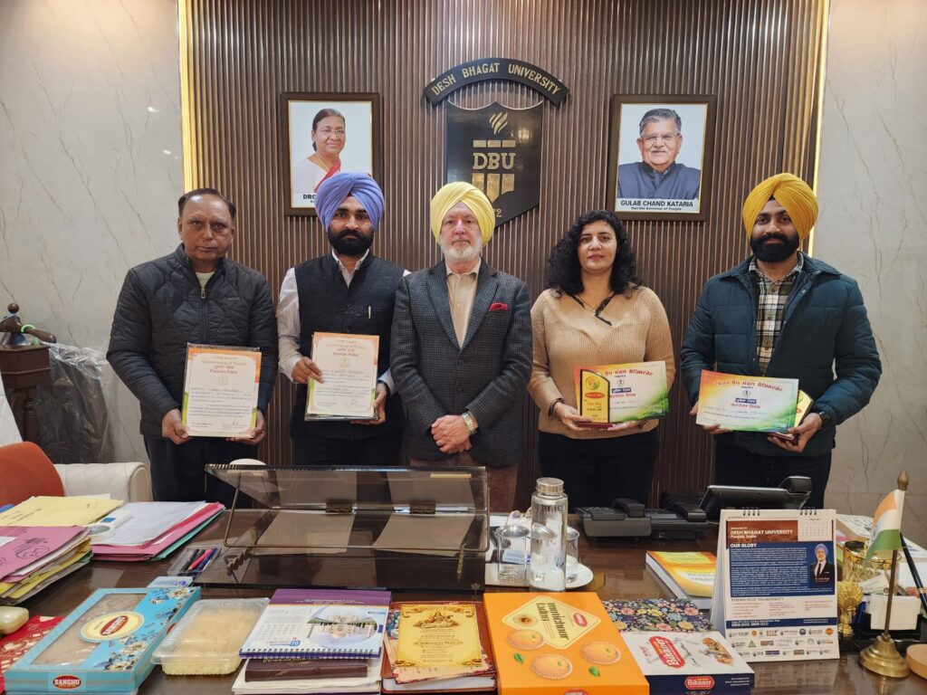 ਗਣਤੰਤਰ ਦਿਵਸ 2026 ਦੇ ਮਾਣਮੱਤੇ ਮੌਕੇ ’ਤੇ, ਦੇਸ਼ ਭਗਤ ਯੂਨੀਵਰਸਿਟੀ (ਡੀਬੀਯੂ) ਦੇ ਅਧਿਕਾਰੀਆਂ ਨੂੰ ਜ਼ਿਲ੍ਹਾ ਪ੍ਰਸ਼ਾਸਨ ਵੱਲੋਂ ਭਾਈਚਾਰੇ ਪ੍ਰਤੀ ਉਨ੍ਹਾਂ ਦੀਆਂ ਮਿਸਾਲੀ ਸੇਵਾਵਾਂ ਦੇ ਸਨਮਾਨ ਵਜੋਂ ਪ੍ਰਮਾਣ ਪੱਤਰ ਨਾਲ ਸਨਮਾਨਿਤ ਕੀਤਾ ਗਿਆ।