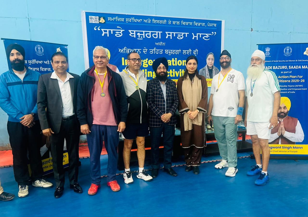 ਸਮਾਜਿਕ ਸੁਰਖਿਆ, ਇਸਤਰੀ ਤੇ ਬਾਲ ਵਿਭਾਗ ਪੰਜਾਬ, ਐਸ ਏ ਐਸ ਨਗਰ ਵੱਲੋਂ, ‘ਸਾਡੇ ਬਜ਼ੁਰਗ ਸਾਡਾ ਮਾਣ ਮੁਹਿੰਮ ਨੂੰ ਉਤਸ਼ਾਹਿਤ ਕਰਨ ਲਈ, ਅੱਜ ਖੇਡ ਭਵਨ ਸੈਕਟਰ-78 ਐਸ ਏ ਐਸ ਨਗਰ ਵਿਖੇ ਬੈਡਮਿੰਟਨ ਟੂਰਨਾਮੈਂਟ ਕਰਵਾਇਆ ਗਿਆ।ਇਸ ਟੂਰਨਾਮੈਂਟ ਵਿਚ 45 ਖਿਡਾਰੀਆਂ ਵੱਲੋਂ ਬੜੇ ਉਤਸ਼ਾਹ ਨਾਲ ਭਾਗ ਲਿਆ ਅਤੇ ਖੇਡ ਭਾਵਨਾ ਦੀ ਸ਼ਾਨਦਾਰ ਮਿਸਾਲ ਪੇਸ਼ ਕੀਤੀ ਗਈ। ਟੂਰਨਾਮੈਂਟ ਦਾ ਉਦੇਸ਼ ਬਜ਼ੁਰਗਾਂ ਵਿੱਚ ਖੇਡਾਂ ਪ੍ਰਤੀ ਰੁਚੀ ਵਧਾਉਣਾ ਅਤੇ ਸਿਹਤਮੰਦ ਜੀਵਨ ਸ਼ੈਲੀ ਨੂੰ ਉਤਸਾਹਿਤ ਕਰਨਾ ਸੀ। ਮੁਕਾਬਲਿਆਂ ਵਿੱਚ ਦਰਸ਼ਕਾਂ ਦੀ ਵੀ ਵੱਡੀ ਗਿਣਤੀ ਮੌਜੂਦ ਰਹੀ।