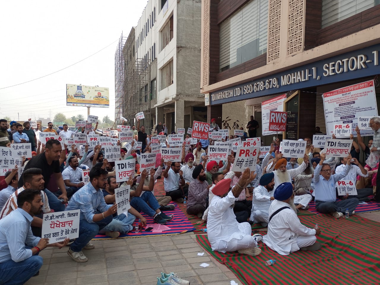 (ਕੋਰਵਾਸ) ਕਮੇਟੀ ਆਫ ਰੈਜੀਡੈਂਟ ਵੈਲਫੇਅਰ ਐਸੋਸੀਏਸ਼ਨ ਅਤੇ ਸੋਸਾਇਟੀਜ਼ ਮੈਗਾ ਮੋਹਾਲੀ ਦੇ ਬੈਨਰ ਥੱਲੇ ਮੈਗਾ ਪ੍ਰੋਜੈਕਟਾਂ ਦੀਆਂ ਵੱਖ-ਵੱਖ ਜਥੇਬੰਦੀਆਂ ਵੱਲੋਂ ਰਾਜਵਿੰਦਰ ਸਿੰਘ ਸਰਾਓ ਦੀ ਪ੍ਰਧਾਨਗੀ ਹੇਠ ਟੀ.ਡੀ.ਆਈ. ਦੇ ਮੁੱਖ ਦਫਤਰ ਵਿਖੇ ਵਿਸ਼ਾਲ ਧਰਨਾ ਦਿੱਤਾ ਗਿਆ। ਧਰਨਾ ਪੀ.ਆਰ. -6 ਸੜਕ ਦੇ ਨਿਰਮਾਣ ਵਿੱਚ ਕੀਤੀ ਜਾ ਰਹੀ ਦੇਰੀ ਕਾਰਨ ਦਿੱਤਾ ਗਿਆ। ਧਰਨੇ ਵਿੱਚ ਸੈਂਕੜਿਆਂ ਦੀ ਗਿਣਤੀ ਵਿੱਚ ਪ੍ਰਭਾਵਿਤ ਲੋਕਾਂ ਵੱਲੋਂ ਸ਼ਮੂਲੀਅਤ ਕੀਤੀ ਗਈ। ਸਰਕਾਰ ਵੱਲੋਂ ਇਸ ਸੜਕ ਤੇ ਪਹਿਲਾਂ ਹੀ 200 ਕਰੋੜ ਖਰਚ ਕੀਤੇ ਜਾ ਚੁੱਕੇ ਹਨ ਪਰ ਬਿਲਡਰ ਦੀਆਂ ਲੂੰਬੜ ਚਾਲਾਂ ਕਾਰਨ ਇਸ ਸੜਕ ਦਾ ਨਿਰਮਾਣ ਨਹੀਂ ਹੋ ਰਿਹਾ ਜਦਕਿ ਬਿਲਡਰ ਵੱਲੋਂ ਇਸ ਸੜਕ ਦੇ ਵੱਡ-ਵੱਡੇ ਬੋਰਡ ਲਾ ਕੇ ਲੋਕਾਂ ਨੂੰ ਲੁੱਟਿਆ ਜਾ ਰਿਹਾ ਹੈ। ਇਹ ਬਿਲਡਰ ਇਸ ਇਲਾਕੇ ਦੀਆਂ ਜਮੀਨਾਂ ਨੂੰ ਸਸਤੇ ਭਾਅ ਵਿੱਚ ਹਥਿਆਉਣਾ ਚਾਹੁੰਦਾ ਹੈ। ਜਿਸ ਕਾਰਨ ਇਹ ਮਾਣਯੋਗ ਅਦਾਲਤ ਵਿੱਚ ਚਲਦੇ ਕੇਸ ਨੂੰ ਆਨੇ ਬਹਾਨੇ ਲਾ ਕੇ ਲਮਕਾਉਣ ਦੀ ਕੋਸ਼ਿਸ਼ ਕਰਦਾ ਰਹਿੰਦਾ ਹੈ। ਜਦੋਂ ਇਹ ਬਿਲਡਰ ਇੰਨਾ ਸੜਕਾਂ ਲਈ ਬਣੀ ਸਾਲ 2015 ਦੀ ਨੀਤੀ ਨੂੰ ਪ੍ਰਵਾਨ ਕਰ ਚੁੱਕਾ ਹੈ ਫੇਰ ਮਾਨਯੋਗ ਅਦਾਲਤ ਵਿੱਚ ਜਾਣ ਦੀ ਕੋਈ ਤੁੱਕ ਨਹੀਂ ਸੀ ਬਣਦੀ ਪਰ ਇਸ ਬਿਲਡਰ ਵੱਲੋਂ ਇਸ ਸੜਕ ਦੇ ਨਿਰਮਾਣ ਵਿੱਚ ਦੇਰੀ ਕਰਨ ਲਈ ਹੀ ਕੋਰਟ ਦਾ ਸਹਾਰਾ ਲਿਆ ਗਿਆ ਹੈ। ਇਸ ਬਿਲਡਰ ਨੇ ਇਸ ਸੜਕ ਦੇ ਵੱਡੇ-ਵੱਡੇ ਬੋਰਡ ਲਾ ਕੇ ਲੋਕਾਂ ਨੂੰ ਲੁੱਟਿਆ ਹੈ। ਇਹ ਬੋਰਡ ਅੱਜ ਵੀ ਲੱਗੇ ਦਿਖਾਈ ਦੇ ਰਹੇ ਹਨ ਪਰ ਬਿਲਡਰ ਵੱਲੋਂ ਆਪ ਹੀ ਸੜਕ ਬਣਾਉਣ ਲਈ ਅੜਚਣਾ ਪੈਦਾ ਕੀਤੀਆਂ ਜਾ ਰਹੀਆਂ ਹਨ। ਜਿਸ ਕਾਰਨ ਲੋਕਾਂ ਨੂੰ ਗੰਦਗੀ ਵਿੱਚ ਰਹਿਣ ਲਈ ਮਜਬੂਰ ਹੋਣਾ ਪੈ ਰਿਹਾ ਹੈ। ਇਸ ਸੜਕ ਵਾਲੀ ਥਾਂ ਤੇ ਗੰਦਾ ਪਾਣੀ ਭਰ ਕੇ ਖੜ ਜਾਂਦਾ ਹੈ ਅਤੇ ਆਵਾਜਾਈ ਵੀ ਪ੍ਰਭਾਵਿਤ ਹੋ ਰਹੀ ਹੈ