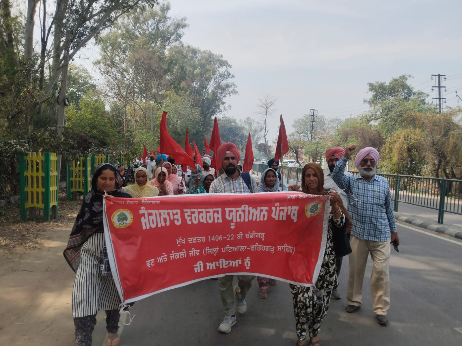 ਜੰਗਲਾਤ ਵਰਕਰਜ ਯੂਨੀਅਨ ਪਟਿਆਲਾ ਵੱਲੋਂ ਆਪਣੀਆਂ ਰਹਿੰਦੀਆਂ ਤਨਖਾਹਾਂ ਅਤੇ ਮਾਨਯੋਗ ਹਾਈਕੋਰਟ ਕੇਸਾਂ ਦੇ ਬਕਾਏ ਜਾਰੀ ਕਰਾਉਣ ਲਈ ਲਾਇਆ ਪੱਕਾ ਮੋਰਚਾ ਅੱਜ ਗਿਆਰਵੇਂ ਦਿਨ ਵਿੱਚ ਦਾਖਲ ਹੋ ਗਿਆ ਅੱਜ ਵੱਡੀ ਗਿਣਤੀ ਵਿੱਚ ਜੰਗਲਾਤ ਕਾਮੇ ਖਰਾਬ ਮੌਸਮ ਦੀ ਪਰਵਾਹ ਨਾ ਕਰਦੇ ਹੋਏ ਵਣ ਮੰਡਲ ਦਫਤਰ ਪਟਿਆਲਾ ਅੱਗੇ ਇਕੱਤਰ ਹੋਏ ਅੱਜ ਦੇ ਇਸ ਇਕੱਠ ਦੀ ਅਗਵਾਈ ਜਸਵਿੰਦਰ ਸਿੰਘ ਸੌਜਾ, ਜਗਤਾਰ ਸਿੰਘ ਸ਼ਾਹਪੁਰ, ਜੋਗਾ ਸਿੰਘ ਵਜੀਦਪੁਰ, ਨਰੇਸ ਬੋਸਰ ਤੇ ਸ਼ੇਰ ਸਿੰਘ ਸਰਹਿੰਦ ਨੇ ਕੀਤੀ ਇਕੱਤਰ ਹੋਏ ਕਾਮਿਆਂ ਨੂੰ ਸਬੋਧਨ ਕਰਦਿਆਂ ਆਗੂਆ ਨੇ ਕਿਹਾ ਕਿ ਲੰਮੇ ਸਮੇਂ ਤੋਂ ਆਪਣੀਆਂ ਮੰਗਾਂ ਬਾਰੇ ਇਸ ਦਫਤਰ ਅੱਗੇ ਨੌ ਮਾਰਚ ਤੋਂ ਚੱਲ ਰਿਹਾ ਪੱਕਾ ਮੋਰਚਾ ਅੱਜ ਖਰਾਬ ਮੌਸਮ ਚ,ਉਸ ਸਮੇਂ ਗਰਮੀ ਵਿੱਚ ਆ ਗਿਆ ਜਦੋਂ ਭੜਕੇ ਜੰਗਲਾਤ ਕਾਮਿਆਂ ਨੇ ਫੈਸਲਾ ਕੀਤਾ ਕਿ ਉਹ ਮਾਰਚ ਕਰਕੇ ਡਿਪਟੀ ਕਮਿਸ਼ਨਰ ਪਟਿਆਲਾ ਨੂੰ ਮੰਗ ਪੱਤਰ ਦੇ ਕੇ ਹੋ ਰਹੀ ਜਿਆਦਤੀ ਬਾਰੇ ਜਾਣੂ ਕਿਰਾਇਆ ਕਿ ਇਹ ਅਧਿਕਾਰੀ ਲਗਾਤਾਰ ਦਫਤਰ ਤੋ ਗੈਰ ਹਾਜਰ ਰਹਿੰਦਾ ਹੈ ਜਿਸ ਨਾਲ ਦਫਤਰ ਦਾ ਕੰਮ ਕਾਰ ਵੀ ਪ੍ਰਭਾਵਿਤ ਹੋ ਰਿਹਾ ਹੈ। ਅੱਜ ਦੀ ਇਕੱਤਰਤਾ ਨੂੰ ਸੰਬੋਧਨ ਕਰਦਿਆਂ ਪੰਜਾਬ ਸਵਾਰਡੀਨੇਟ ਸਰਵਿਸ ਫੈਡਰੇਸ਼ਨ ਦੇ ਆਗੂਆਂ ਦਰਸ਼ਨ ਬੇਲੂ ਮਾਜਰਾ,ਜਸਵੀਰ ਖੋਖਰ,ਰਾਜਪਾਲ ਲਸੋਈ ਤੇ ਧਰਮਪਾਲ ਲੌਟ ਨੇ ਕਿਹਾ ਕਿ ਜੇਕਰ ਇਸ ਅਧਿਕਾਰੀ ਵੱਲੋਂ ਮੰਗਾਂ ਦਾ ਹੱਲ ਨਾ ਕੀਤਾ ਤਾਂ ਉਹ ਮਜਬੂਰ ਹੋ ਕੇ ਫੈਡਰੇਸ਼ਨ ਨਾਲ ਸੰਬੰਧਿਤ ਬਾਕੀ ਜਥੇਬੰਦੀਆਂ ਇਸ ਧਰਨੇ ਵਿੱਚ ਝੋਕ ਦੇਣਗੇ ਅਤੇ ਇਸ ਧਰਨੇ ਨੂੰ ਇੱਥੋਂ ਬਦਲਕੇ ਵਿਜੀਲੈਂਸ ਦਫਤਰ ਅੱਗੇ ਲੈ ਜਾਣਗੀਆਂ ਤੇ ਉੱਥੇ ਇਸ ਅਧਿਕਾਰੀ ਦੇ ਭਰਿਸ਼ਟਾਚਾਰ ਦੇ ਕੱਚੇ ਚਿੱਠੇ ਵਿਜੀਲੈਂਸ ਨੂੰ ਦੱਸਣ ਲਈ ਮਜਬੂਰ ਹੋਣਗੇ ਉਹਨਾਂ ਚੇਤਾਵਨੀ ਭਰੇ ਲਹਿਜੇ ਵਿੱਚ ਕਿਹਾ ਕਿ ਅਧਿਕਾਰੀ ਨੂੰ ਕੰਧ ਤੇ ਲਿਖਿਆ ਪੜ ਲੈਣਾ ਚਾਹੀਦਾ ਹੈ ਨਹੀਂ ਤਾਂ ਇਹ ਸੰਘਰਸ਼ ਵਿਆਪਕ ਰੂਪ ਧਾਰ ਜਾਵੇਗਾ ਮੋਰਚੇ ਦੀ ਉਸ ਸਮੇ ਜਿੱਤ ਹੋਈ ਜਦੋ ਡਿਪਟੀ ਕਮਿਸ਼ਨਰ ਦਫਤਰ ਵੱਲੋ ਖਜਾਨਾ ਅਫਸਰ ਨਾਲ ਤਾਲਮੇਲ ਕਰਕੇ ਕਰਮਚਾਰੀਆਂ ਦਾ ਕੇਸਾਂ ਦਾ ਬਕਾਇਆ ਜਾਰੀ ਕਵਾਇਆ ਜਿਸ ਨਾਲ ਕਰਮਚਾਰੀਆਂ ਚ, ਖੁਸੀ ਦੀ ਲਹਿਰ ਦੋੜ ਗਈ ਅੱਜ ਦੀ ਇਕੱਤਰਤਾ ਵਿੱਚ ਹੋਰਨਾਂ ਤੋਂ ਇਲਾਵਾ ਹੇਠ ਲਿਖੇ ਆਗੂ ਭੂਪਿੰਦਰ ਸਿੰਘ ਰੌਣੀ,ਗੁਰਜਿੰਦਰ ਸਿੰਘ,ਅਮਰਜੀਤ ਬੋਸਰ,ਜੀਤ ਖਾਨ, ਸਤਨਾਮ ਸੌਜਾ,ਕਿਰਨਾ ਨਾਭਾ,ਗੁਰਮੀਤ ਕੋਰ ਨਾਭਾ,ਨਾਜਮਾ ਬੇਗਮ ਜਸਪਾਲ ਕੌਰ ਸਰਹਿੰਦ ਰਣਜੀਤ ਕੌਰ ਲਚਕਾਣੀ, ਅਮਰਜੀਤ ਕੌਰ ਭਾਦਸੋ ਆਦਿ ਨੇ ਸੰਬੋਧਨ ਕੀਤਾ