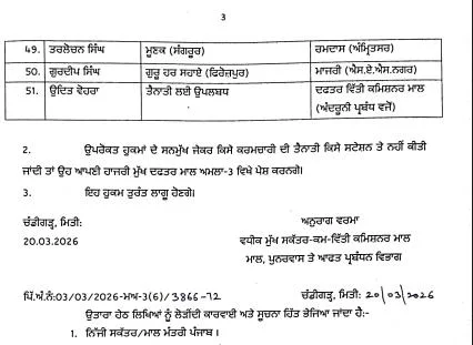 ਪੰਜਾਬ ਸਰਕਾਰ ਵੱਲੋਂ ਤਹਿਸੀਲਦਾਰਾਂ ਅਤੇ ਨਾਇਬ ਤਹਿਸੀਲਦਾਰਾਂ ਦਾ ਤਬਾਦਲਾ ਚੰਡੀਗੜ੍ਹ ਪੰਜਾਬ ਮਾਰਚ 20, 2026ਮਾਰਚ 20, 2026BolePunjab.comLeave a Comment on ਪੰਜਾਬ ਸਰਕਾਰ ਵੱਲੋਂ ਤਹਿਸੀਲਦਾਰਾਂ ਅਤੇ ਨਾਇਬ ਤਹਿਸੀਲਦਾਰਾਂ ਦਾ ਤਬਾਦਲਾ ਚੰਡੀਗੜ੍ਹ 20 ਮਾਰਚ ,ਬੋਲੇ ਪੰਜਾਬ ਬਿਊਰੋ; ਪੰਜਾਬ ਸਰਕਾਰ ਵੱਲੋਂ 53 ਤਹਿਸੀਲਦਾਰਾਂ ਅਤੇ ਨਾਇਬ ਤਹਿਸੀਲਦਾਰਾਂ ਦਾ ਤਬਾਦਲਾ ਕੀਤਾ ਗਿਆ ਹੈ Latest Newsਧੋਖਾਧੜੀ ਨਾਲ ਚੀਨ ਦੇ ਕੁਝ ਨਾਗਰਿਕਾਂ ਦੇ ਖਾਤਿਆਂ ਵਿੱਚ ਪੈਸਾ ਭੇਜਣ ਵਾਲੇ ਮਿਊਲ ਖਾਤਾ ਗਿਰੋਹ ਦੇ ਤਿੰਨ ਵਿਅਕਤੀ ਗ੍ਰਿਫ਼ਤਾਰ; ਖਾਤਿਆਂ ਵਿੱਚ ਪਏ 20 ਲੱਖ ਰੁਪਏ ਕੀਤੇ ਫਰੀਜ਼, 5100 ਅਮਰੀਕੀ ਡਾਲਰ ਮੁੱਲ ਦੀ ਕ੍ਰਿਪਟੋ ਕਰੰਸੀ ਬਰਾਮਦਆਯੂਸ਼ਮਨ ਭਾਰਤ ਸਕੀਮ ਵਿੱਚ ਸ਼ਰਤਾਂ ਲਾਗੂ, ਜਦੋਂ ਕਿ ‘ਆਪ` ਸਰਕਾਰ ਦੀ ਮੁੱਖ ਮੰਤਰੀ ਸਿਹਤ ਯੋਜਨਾ ਬਿਨਾਂ ਕਿਸੇ ਪਾਬੰਦੀ ਦੇ 10 ਲੱਖ ਰੁਪਏ ਦੇ ਨਕਦ ਰਹਿਤ ਇਲਾਜ ਦੀ ਗਰੰਟੀ ਦਿੰਦੀ ਹੈ, ਫਰਕ ਇਰਾਦੇ ਵਿੱਚ ਹੈ: ਮੁੱਖ ਮੰਤਰੀ ਭਗਵੰਤ ਸਿੰਘ ਮਾਨਬੇਅਦਬੀ ਮਾਮਲਿਆਂ ਨੂੰ ਲੈ ਕੇ ਸਰਕਾਰ ਸੰਜੀਦਾ ਹੋਵੇ- ਐਡਵੋਕੇਟ ਧਾਮੀਖ਼ਾਲਸਈ ਜਾਹੋ-ਜਲਾਲ ਨਾਲ ਮਨਾਈ ਜਾਵੇਗੀ ਸ੍ਰੀ ਕੀਰਤਪੁਰ ਸਾਹਿਬ ਦੇ 400 ਸਾਲਾ ਸਥਾਪਨਾ ਦਿਵਸ ਦੀ ਸ਼ਤਾਬਦੀ-ਐਡਵੋਕੇਟ ਧਾਮੀਗੁਰਦੁਆਰਾ ਸ੍ਰੀ ਦਰਬਾਰ ਸਾਹਿਬ ਤਰਨ ਤਾਰਨ ਦੀ ਦਰਸ਼ਨੀ ਡਿਊੜੀ ਦੇ ਬਾਹਰ ਜੋੜਾ ਘਰ ਗੱਠੜੀ ਘਰ ਸਮੇਤ ਹੋਰ ਸੇਵਾਵਾਂ ਦੀ ਸੇਵਾ ਹੋਈ ਆਰੰਭPreviousNextLatest Newsਧੋਖਾਧੜੀ ਨਾਲ ਚੀਨ ਦੇ ਕੁਝ ਨਾਗਰਿਕਾਂ ਦੇ ਖਾਤਿਆਂ ਵਿੱਚ ਪੈਸਾ ਭੇਜਣ ਵਾਲੇ ਮਿਊਲ ਖਾਤਾ ਗਿਰੋਹ ਦੇ ਤਿੰਨ ਵਿਅਕਤੀ ਗ੍ਰਿਫ਼ਤਾਰ; ਖਾਤਿਆਂ ਵਿੱਚ ਪਏ 20 ਲੱਖ ਰੁਪਏ ਕੀਤੇ ਫਰੀਜ਼, 5100 ਅਮਰੀਕੀ ਡਾਲਰ ਮੁੱਲ ਦੀ ਕ੍ਰਿਪਟੋ ਕਰੰਸੀ ਬਰਾਮਦਆਯੂਸ਼ਮਨ ਭਾਰਤ ਸਕੀਮ ਵਿੱਚ ਸ਼ਰਤਾਂ ਲਾਗੂ, ਜਦੋਂ ਕਿ ‘ਆਪ` ਸਰਕਾਰ ਦੀ ਮੁੱਖ ਮੰਤਰੀ ਸਿਹਤ ਯੋਜਨਾ ਬਿਨਾਂ ਕਿਸੇ ਪਾਬੰਦੀ ਦੇ 10 ਲੱਖ ਰੁਪਏ ਦੇ ਨਕਦ ਰਹਿਤ ਇਲਾਜ ਦੀ ਗਰੰਟੀ ਦਿੰਦੀ ਹੈ, ਫਰਕ ਇਰਾਦੇ ਵਿੱਚ ਹੈ: ਮੁੱਖ ਮੰਤਰੀ ਭਗਵੰਤ ਸਿੰਘ ਮਾਨਬੇਅਦਬੀ ਮਾਮਲਿਆਂ ਨੂੰ ਲੈ ਕੇ ਸਰਕਾਰ ਸੰਜੀਦਾ ਹੋਵੇ- ਐਡਵੋਕੇਟ ਧਾਮੀਖ਼ਾਲਸਈ ਜਾਹੋ-ਜਲਾਲ ਨਾਲ ਮਨਾਈ ਜਾਵੇਗੀ ਸ੍ਰੀ ਕੀਰਤਪੁਰ ਸਾਹਿਬ ਦੇ 400 ਸਾਲਾ ਸਥਾਪਨਾ ਦਿਵਸ ਦੀ ਸ਼ਤਾਬਦੀ-ਐਡਵੋਕੇਟ ਧਾਮੀਗੁਰਦੁਆਰਾ ਸ੍ਰੀ ਦਰਬਾਰ ਸਾਹਿਬ ਤਰਨ ਤਾਰਨ ਦੀ ਦਰਸ਼ਨੀ ਡਿਊੜੀ ਦੇ ਬਾਹਰ ਜੋੜਾ ਘਰ ਗੱਠੜੀ ਘਰ ਸਮੇਤ ਹੋਰ ਸੇਵਾਵਾਂ ਦੀ ਸੇਵਾ ਹੋਈ ਆਰੰਭਮੋਹਾਲੀ ਪੁਲਿਸ ਨੇ ਹਾਈ-ਪ੍ਰੋਫਾਈਲ ਚੋਰੀ ਦੇ ਮਾਮਲੇ ਨੂੰ ਸੁਲਝਾਇਆ, 4 ਮੁਲਜ਼ਮਾਂ ਨੂੰ ਗ੍ਰਿਫ਼ਤਾਰ ਕੀਤਾ; ਸੋਨਾ, ਨਕਦੀ ਅਤੇ ਹਥਿਆਰ ਬਰਾਮਦ ਕੀਤੇਪੰਜਾਬ ਸਟੇਟ ਟ੍ਰੇਡਰਜ਼ ਕਮਿਸ਼ਨ ਵੱਲੋਂ ਕਲਗੀਧਰ ਮਾਰਕੀਟ, ਬਲਟਾਣਾ ਵਿਖੇ ਵਪਾਰੀਆਂ ਨਾਲ ਮੁਲਾਕਾਤਪੰਜਾਬ ਸਰਕਾਰ ਵੱਲੋਂ ਤਹਿਸੀਲਦਾਰਾਂ ਅਤੇ ਨਾਇਬ ਤਹਿਸੀਲਦਾਰਾਂ ਦਾ ਤਬਾਦਲਾਪੰਜਾਬ ਕਿੰਗਜ਼ ਦੇ ਕਪਤਾਨ ਸ਼੍ਰੇਅਸ ਅਈਅਰ ਅਤੇ ਅਰਸ਼ਦੀਪ ਸਿੰਘ ਨੇ ਕਿਹਾ, “ਆਈਪੀਐਲ ਟਰਾਫੀ ‘ਤੇ ਨਜ਼ਰਾਂ,” ਜਿਵੇਂ ਕਿ ਪੀਬੀਕੇਐਸ ਨੇ ਆਈਪੀਐਲ 2026 ਦੀਆਂ ਤਿਆਰੀਆਂ ਸ਼ੁਰੂ ਕੀਤੀਆਂ।ਛੱਤੀਸਗੜ੍ਹ ਵਿਧਾਨ ਸਭਾ ਨੇ ਜ਼ਬਰਦਸਤੀ ਧਰਮ ਪਰਿਵਰਤਨ ਵਿਰੁੱਧ ਕੀਤਾ ਬਿੱਲ ਪਾਸ, ਉਮਰ ਕੈਦ ਦੀ ਵਿਵਸਥਾ ਸ਼ਾਮਲਦੰਦਾਂ ਦੀ ਸਾਂਭ-ਸੰਭਾਲ ਬੇਹੱਦ ਜ਼ਰੂਰੀ : ਡਾ. ਸੰਗੀਤਾ ਜੈਨਸਰਕਾਰੀ ਆਈ ਟੀ ਆਈਜ਼ ਠੇਕਾ ਮੁਲਾਜ਼ਮ ਯੂਨੀਅਨ ਵੱਲੋਂ ਕੀਤਾ ਸਰਕਾਰ ਦਾ ਅਰਥੀ ਫੂਕ ਮੁਜਾਹਰਾPreviousNext