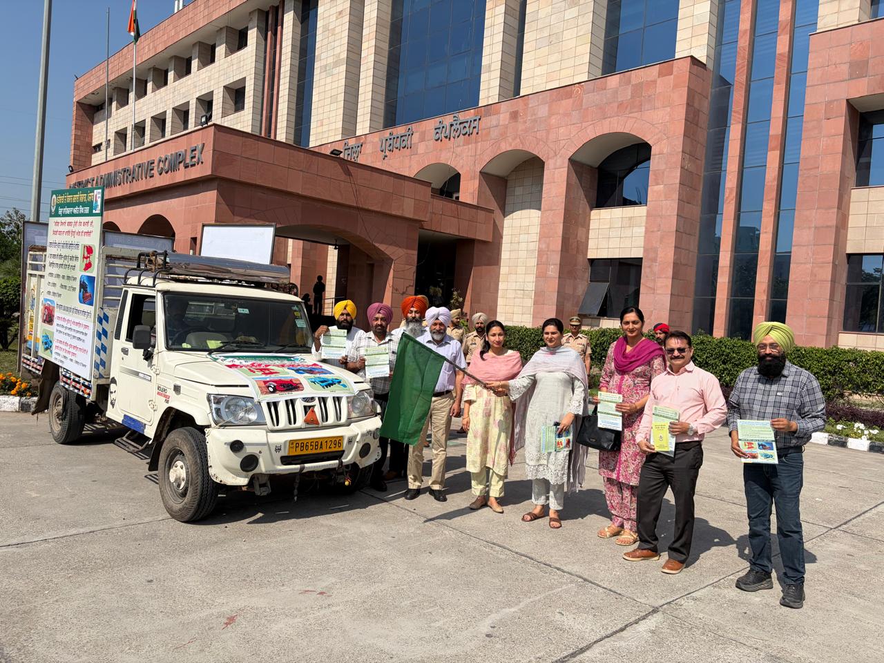 ਡਿਪਟੀ ਕਮਿਸ਼ਨਰ ਐੱਸ.ਏ.ਐੱਸ. ਨਗਰ ਸ਼੍ਰੀਮਤੀ ਕੋਮਲ ਮਿੱਤਲ, ਆਈ.ਏ.ਐਸ. ਦੀ ਅਗਵਾਈ ਹੇਠ ਅਤੇ ਸ਼੍ਰੀਮਤੀ ਸੋਨਮ ਚੌਧਰੀ, ਵਧੀਕ ਡਿਪਟੀ ਕਮਿਸ਼ਨਰ (ਵਿਕਾਸ) ਦੀ ਹਾਜ਼ਰੀ ਵਿੱਚ ਅੱਜ ਖੇਤੀਬਾੜੀ ਅਤੇ ਕਿਸਾਨ ਭਲਾਈ ਵਿਭਾਗ, ਐੱਸ.ਏ.ਐੱਸ. ਨਗਰ ਵੱਲੋਂ ਕਣਕ ਦੇ ਨਾੜ ਨੂੰ ਅੱਗ ਨਾ ਲਗਾਉਣ ਸਬੰਧੀ ਜਾਗਰੂਕਤਾ ਫੈਲਾਉਣ ਲਈ ਆਈ.ਈ.ਸੀ. ਕੰਪੋਨੈਂਟ ਅਧੀਨ ਪਬਲੀਸਿਟੀ ਵੈਨ ਨੂੰ ਹਰੀ ਝੰਡੀ ਦੇ ਕੇ ਰਵਾਨਾ ਕੀਤਾ ਗਿਆ।