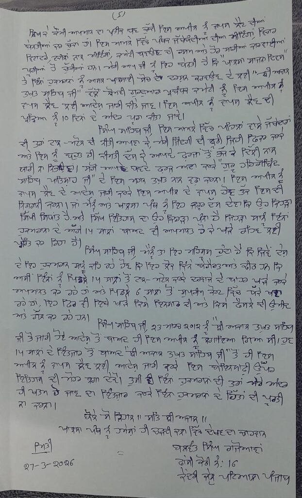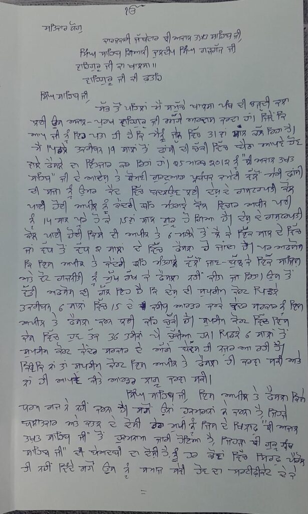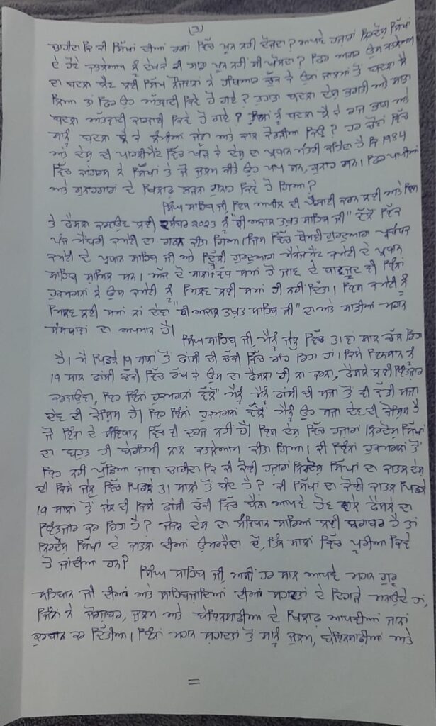 ਭਾਈ ਬਲਵੰਤ ਸਿੰਘ ਰਾਜੋਆਣਾ ਵੱਲੋਂ ਸ੍ਰੀ ਅਕਾਲ ਤਖਤ ਸਾਹਿਬ ਦੇ ਜਥੇਦਾਰ ਕੁਲਦੀਪ ਸਿੰਘ ਗੜਗੱਜ ਨੂੰ ਲਿਖੀ ਚਿੱਠੀ ਲਿਖੀ ਹੈ। ਜਿਸ ਉਨ੍ਹਾਂ ਨੇ ਬੇਨਤੀ ਕੀਤੀ ਹੈ ਕਿ ਜਥੇਦਾਰ ਸ੍ਰੀ ਅਕਾਲ ਤਖਤ ਸਾਹਿਬ ਵੱਲੋਂ ਹੁਕਮ ਜਾਰੀ ਕਰਨ ਕਿ SGPC ਵੱਲੋਂ ਰਾਸ਼ਟਰਪਤੀ ਕੋਲ ਪਾਈ ਰਹਿਮ ਦੀ ਅਰਜ਼ੀ ਵਾਪਸ ਲੈ ਲਈ ਜਾਵੇ। ਉਨ੍ਹਾਂ ਨੇ ਬੇਨਤੀ ਕੀਤੀ ਹੈ ਕਿ ਸ੍ਰੀ ਅਕਾਲ ਤਖਤ ਸਾਹਿਬ ਇਸ ਮਾਮਲੇ ਵਿੱਚ SGPC ਨੂੰ ਸਪਸ਼ਟ ਆਦੇਸ਼ ਜਾਰੀ ਕਰੇ ਅਤੇ ਅਪੀਲ ਵਾਪਿਸ ਲੈਣ ਸੰਬੰਧੀ ਜ਼ਰੂਰੀ ਕਦਮ ਚੁੱਕੇ ਜਾਣ।