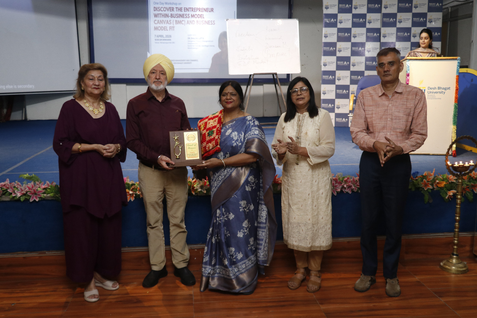 ਦੇਸ਼ ਭਗਤ ਯੂਨੀਵਰਸਿਟੀ ਵੱਲੋਂ ‘ਆਪਣੇ ਅੰਦਰ ਦੇ ਉੱਦਮੀ ਦੀ ਖੋਜ ਕਰੋ – ਬਿਜ਼ਨਸ ਮਾਡਲ ਕੈਨਵਸ (BMC) ਅਤੇ ਬਿਜ਼ਨਸ ਮਾਡਲ ਫਿੱਟ’ ਸਿਰਲੇਖ ਹੇਠ ਇੱਕ ਰੋਜ਼ਾ ਵਰਕਸ਼ਾਪ ਕਾਰਵਾਈ ਗਈ। ਇਹ ਪ੍ਰੋਗਰਾਮ ਸੰਸਥਾ ਦੇ ਇਨੋਵੇਸ਼ਨ ਕੌਂਸਲ (IIC) ਦੇ ਸਹਿਯੋਗ ਨਾਲ ਬਿਜ਼ਨਸ ਮੈਨੇਜਮੈਂਟ ਅਤੇ ਕਾਮਰਸ ਵਿਭਾਗ ਦੁਆਰਾ ਕਰਵਾਇਆ ਗਿਆ, ਜਿਸ ਵਿੱਚ ਵਿਦਿਆਰਥੀਆਂ ਅਤੇ ਫੈਕਲਟੀ ਮੈਂਬਰਾਂ ਨੇ ਉਤਸ਼ਾਹੀ ਭਾਗੀਦਾਰੀ ਕੀਤੀ।
