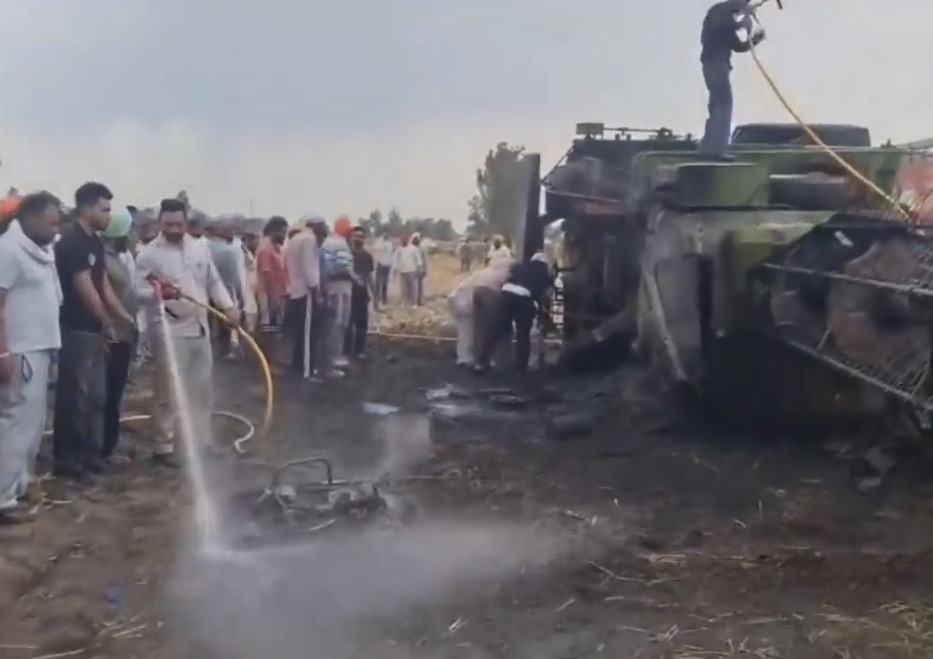 ਸੜਕ ‘ਤੇ ਜਾ ਰਹੀ ਕੰਬਾਈਨ ਬੇਕਾਬੂ ਹੋ ਕੇ ਖੇਤ ‘ਚ ਡਿੱਗੀ, ਲੱਗੀ ਅੱਗ, ਦੋ ਜ਼ਖ਼ਮੀ