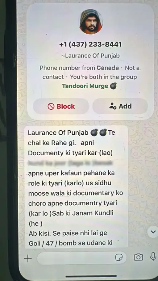 “ਲਾਰੈਂਸ ਆਫ਼ ਪੰਜਾਬ” ਦਸਤਾਵੇਜ਼ੀ ‘ਤੇ ਪਾਬੰਦੀ ਲੱਗਣ ਤੋਂ ਬਾਅਦ, ਵਿਵਾਦ ਨੇ ਇੱਕ ਗੰਭੀਰ ਮੋੜ ਲੈ ਲਿਆ ਹੈ। ਸੂਬੇ ਦੀਆਂ ਕਈ ਪ੍ਰਮੁੱਖ ਹਸਤੀਆਂ ਨੂੰ ਮਿਲੀਆਂ ਜਾਨੋਂ ਮਾਰਨ ਦੀਆਂ ਧਮਕੀਆਂ ਤੋਂ ਸੁਰੱਖਿਆ ਏਜੰਸੀਆਂ ਘਬਰਾ ਗਈਆਂ ਹਨ। ਜਿਨ੍ਹਾਂ ਨੂੰ ਧਮਕੀਆਂ ਮਿਲੀਆਂ ਹਨ ਉਨ੍ਹਾਂ ਵਿੱਚ ਪੰਜਾਬ ਦੇ ਡੀਜੀਪੀ ਗੌਰਵ ਯਾਦਵ, ਪੰਜਾਬ ਕਾਂਗਰਸ ਪ੍ਰਧਾਨ ਅਮਰਿੰਦਰ ਸਿੰਘ ਰਾਜਾ ਵੜਿੰਗ, ਸੰਸਦ ਮੈਂਬਰ ਸੁਖਜਿੰਦਰ ਸਿੰਘ ਰੰਧਾਵਾ ਅਤੇ ਸਿੱਧੂ ਮੂਸੇਵਾਲਾ ਦੇ ਪਿਤਾ ਬਲਕਾਰ ਸਿੰਘ ਸ਼ਾਮਲ ਹਨ। ਇਹ ਧਮਕੀ ਇੱਕ ਵਿਦੇਸ਼ੀ ਵਟਸਐਪ ਨੰਬਰ ਤੋਂ ਭੇਜੀ ਗਈ ਸੀ। ਇਹ ਸੁਨੇਹਾ ਉਨ੍ਹਾਂ ਦੀ ਜਾਨ ਨੂੰ ਖ਼ਤਰਾ ਹੈ। ਹਰੇਕ ਨੂੰ ਸੁਨੇਹੇ ਮਿਲੇ ਹਨ ਜਿਸ ਵਿੱਚ ਲਿਖਿਆ ਹੈ, “ਲਾਰੈਂਸ ਆਫ਼ ਪੰਜਾਬ ਦਸਤਾਵੇਜ਼ੀ ਜ਼ਰੂਰ ਪ੍ਰਸਾਰਿਤ ਹੋਵੇਗੀ, ਇਸ ਲਈ ਆਪਣੇ ਕਫ਼ਨ ਦੀ ਤਿਆਰੀ ਕਰੋ। ਕਿਸੇ ਤੋਂ ਪੈਸੇ ਨਹੀਂ ਲਵਾਂਗੇ, ਪਰ ਗੋਲੀਆਂ ਨਾਲ ਆਪਣੇ ਕਫ਼ਨ ਦੀ ਤਿਆਰੀ ਕਰੋ। ਸੰਤਾਲੀ, ਜਾਂ ਬੰਬ ਨਾਲ ਉੱਡਣ ਲਈ ਤਿਆਰ ਰਹੋ।”ਸਮਝੇ…….