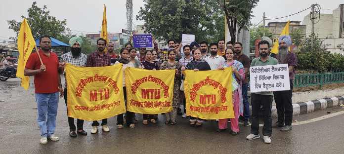 ਵਰ੍ਹਦੇ ਮੀਂਹ ‘ਚ ਮੈਰੀਟੋਰੀਅਸ ਅਧਿਆਪਕਾਂ ਦਾ CM ਮਾਨ ਦੇ ਜ਼ਿਲ੍ਹੇ ਸੰਗਰੂਰ ‘ਚ ਪੋਸਟਰ ਪ੍ਰਦਰਸ਼ਨ