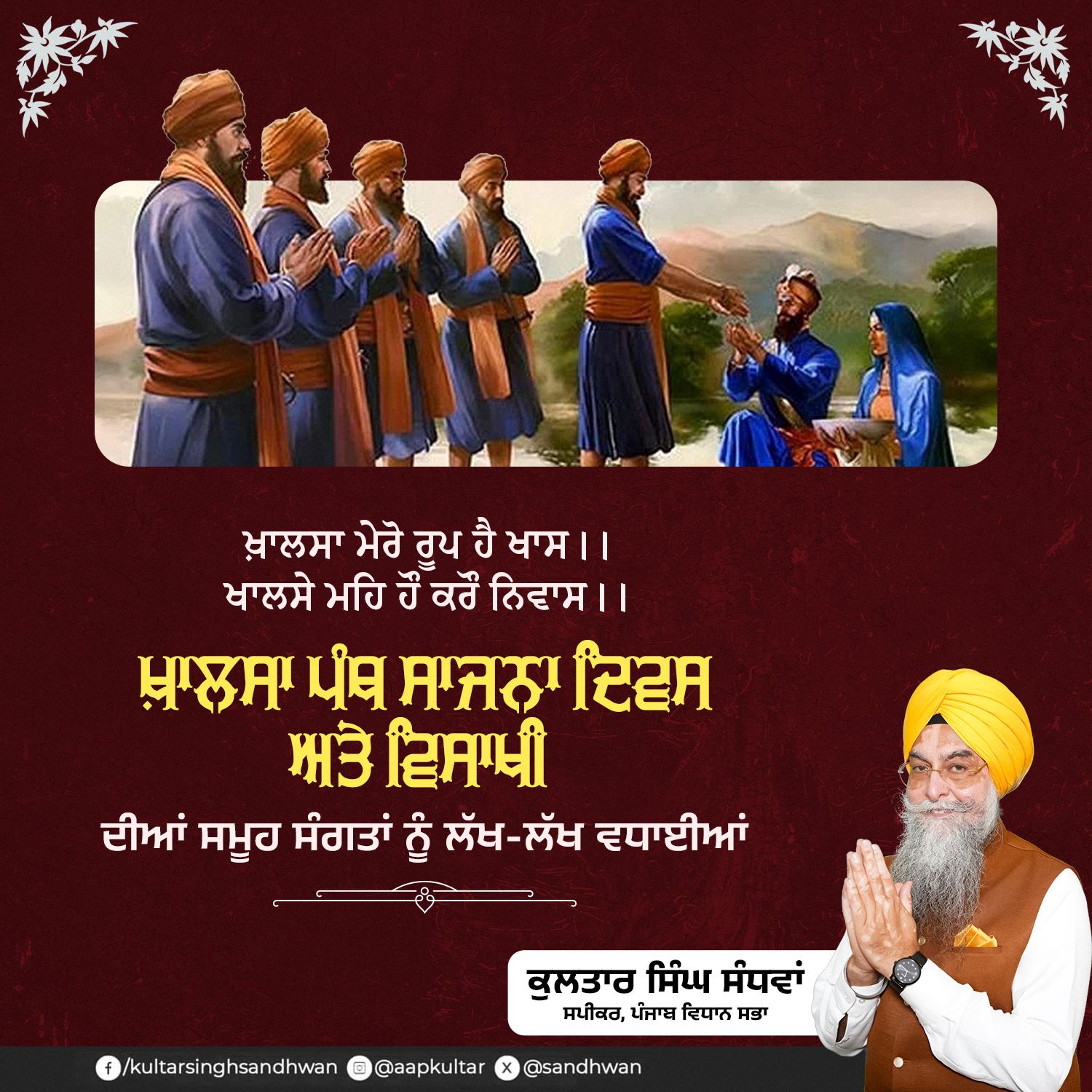 ਪੰਜਾਬ ਵਿਧਾਨ ਸਭਾ ਦੇ ਸਪੀਕਰ ਸ.ਕੁਲਤਾਰ ਸਿੰਘ ਸੰਧਵਾਂ ਵੱਲੋਂ ਲੋਕਾਂ ਨੂੰ ਵਿਸਾਖੀ ਦੀ ਵਧਾਈ