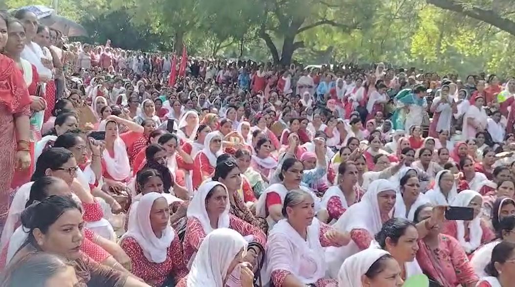 ਈ-ਕੇਵਾਈਸੀ ਤੇ ਐਫਆਰਐਸ ਵਿਰੁੱਧ ਆਂਗਣਵਾੜੀ ਯੂਨੀਅਨ ਵੱਲੋਂ ਚੰਡੀਗੜ੍ਹ ਰੋਸ ਪ੍ਰਦਰਸ਼ਨ